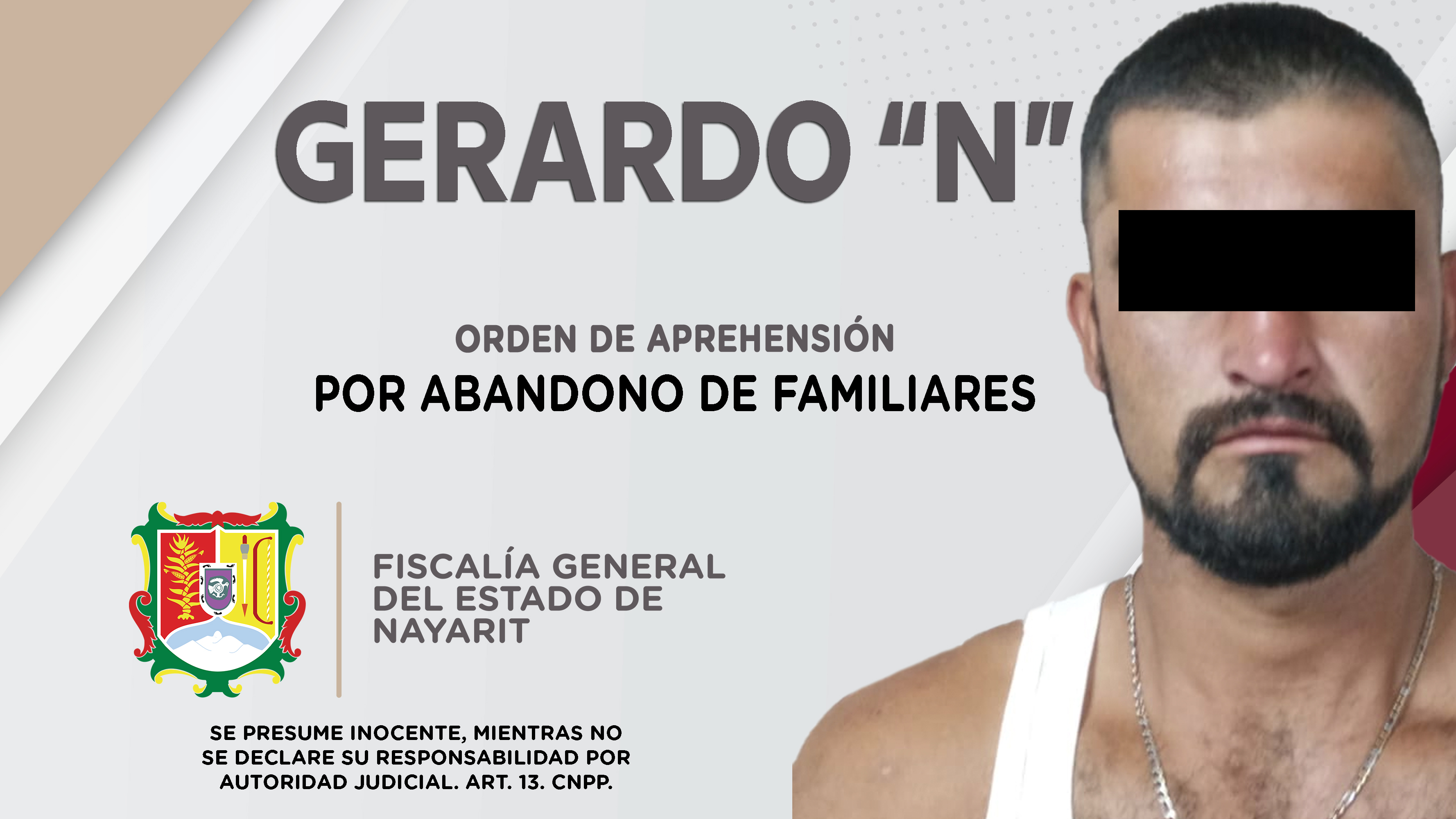 Elementos de la Agencia de Investigación Criminal cumplimentaron una orden de aprehensión contra Gerardo “N”, de quien se presume su responsabilidad en hechos que revisten las características del delito de abandono de familiares, el cual fue comet...