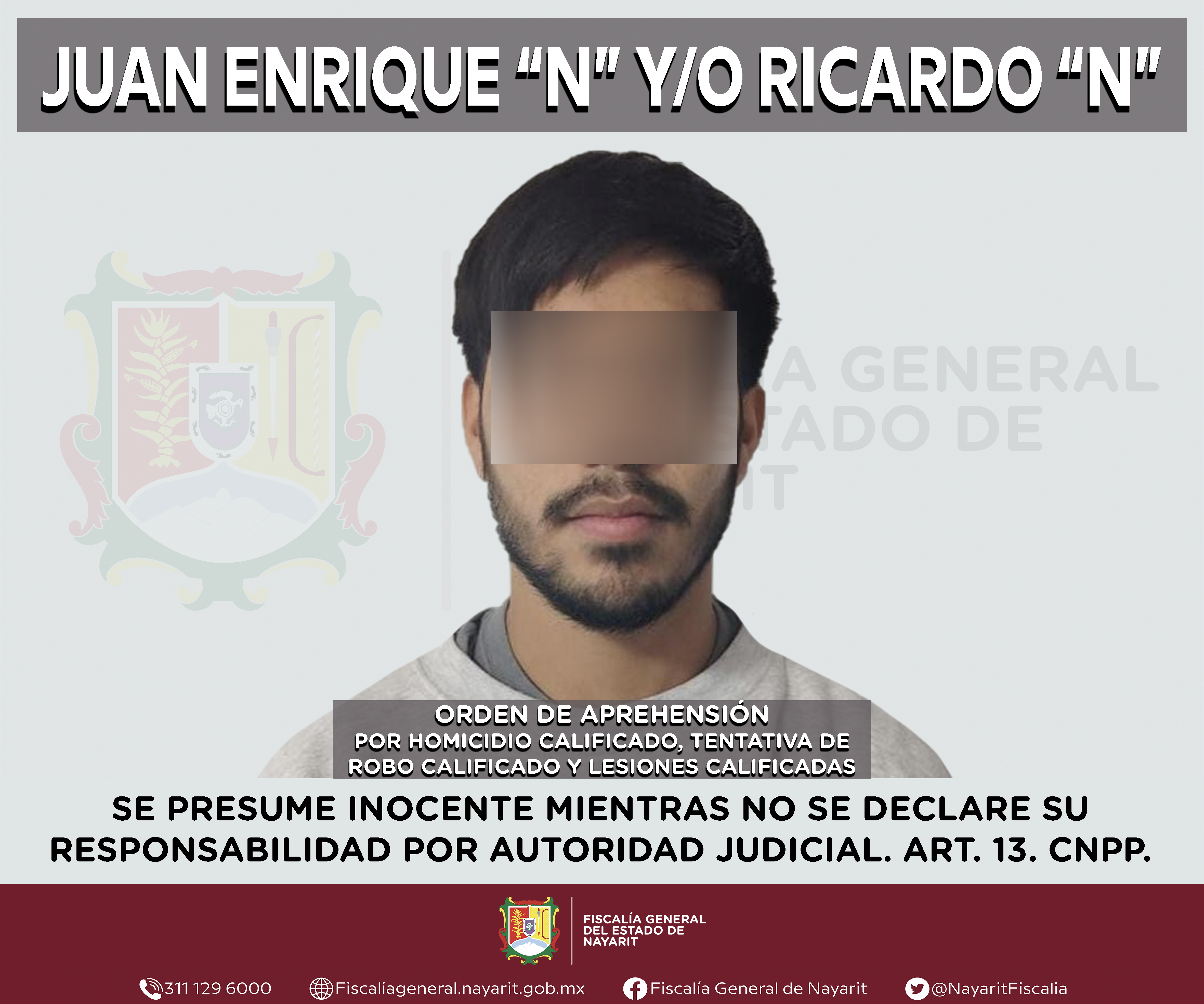 La Fiscalía General del Estado solicitó a la Organización Internacional de Policía Criminal (INTERPOL), la apertura de alerta migratoria y ficha roja contra Juan Enrique “N” y/o Ricardo “N”, quien es presunto responsable de hechos que la ley ...