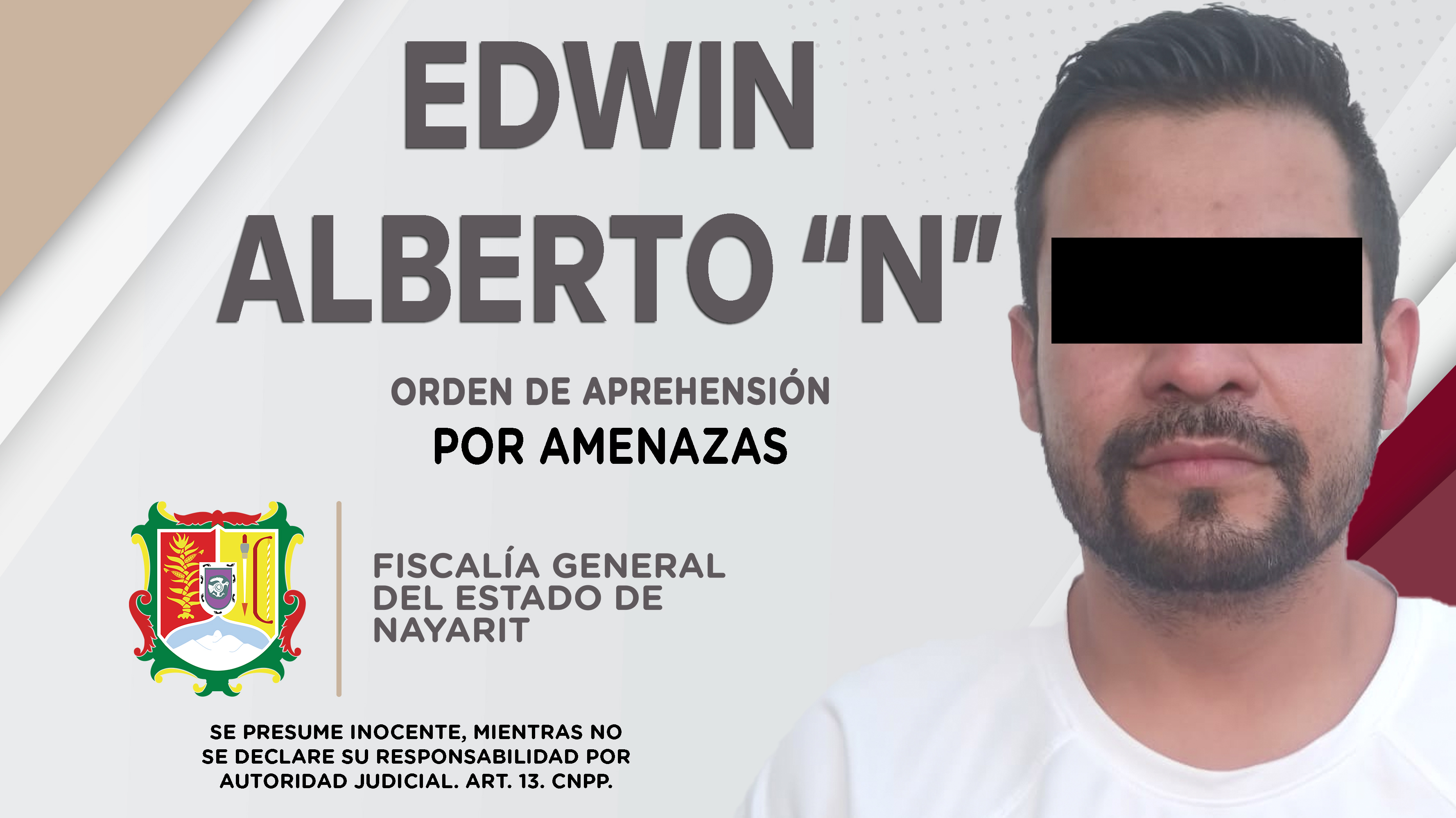 En la ciudad de Tepic, elementos de la Agencia de Investigación Criminal cumplimentaron una orden de aprehensión contra Edwin Alberto “N”, de quien se presume su responsabilidad en hechos que revisten las características del delito de amenazas, el...