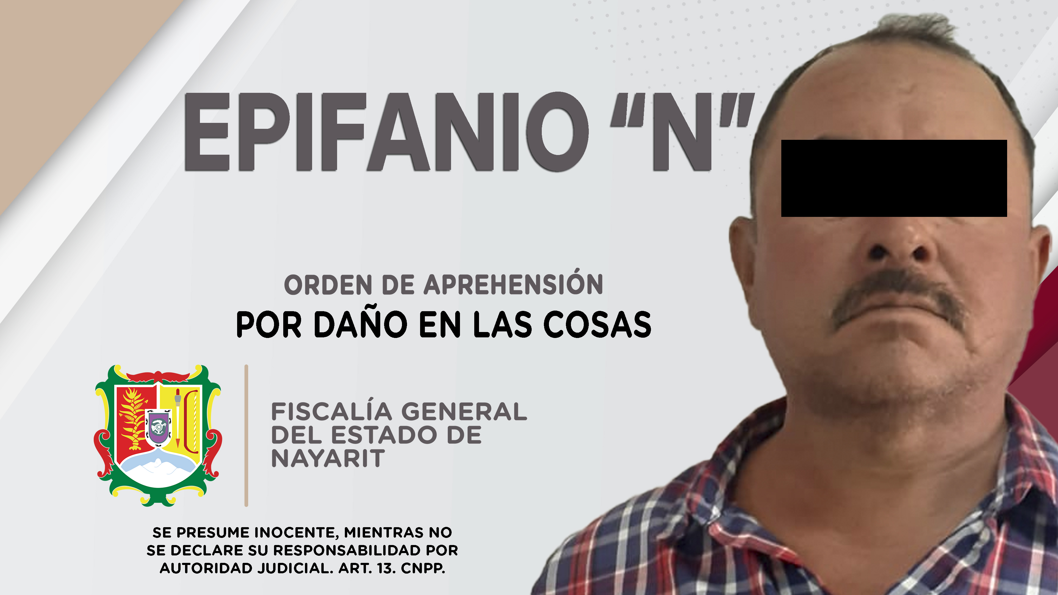En el poblado El Ciruelo, municipio de San Blas, elementos de la Agencia de Investigación Criminal cumplimentaron una orden de aprehensión contra Epifanio “N”, quien presumiblemente es responsable de hechos que revisten las características del del...