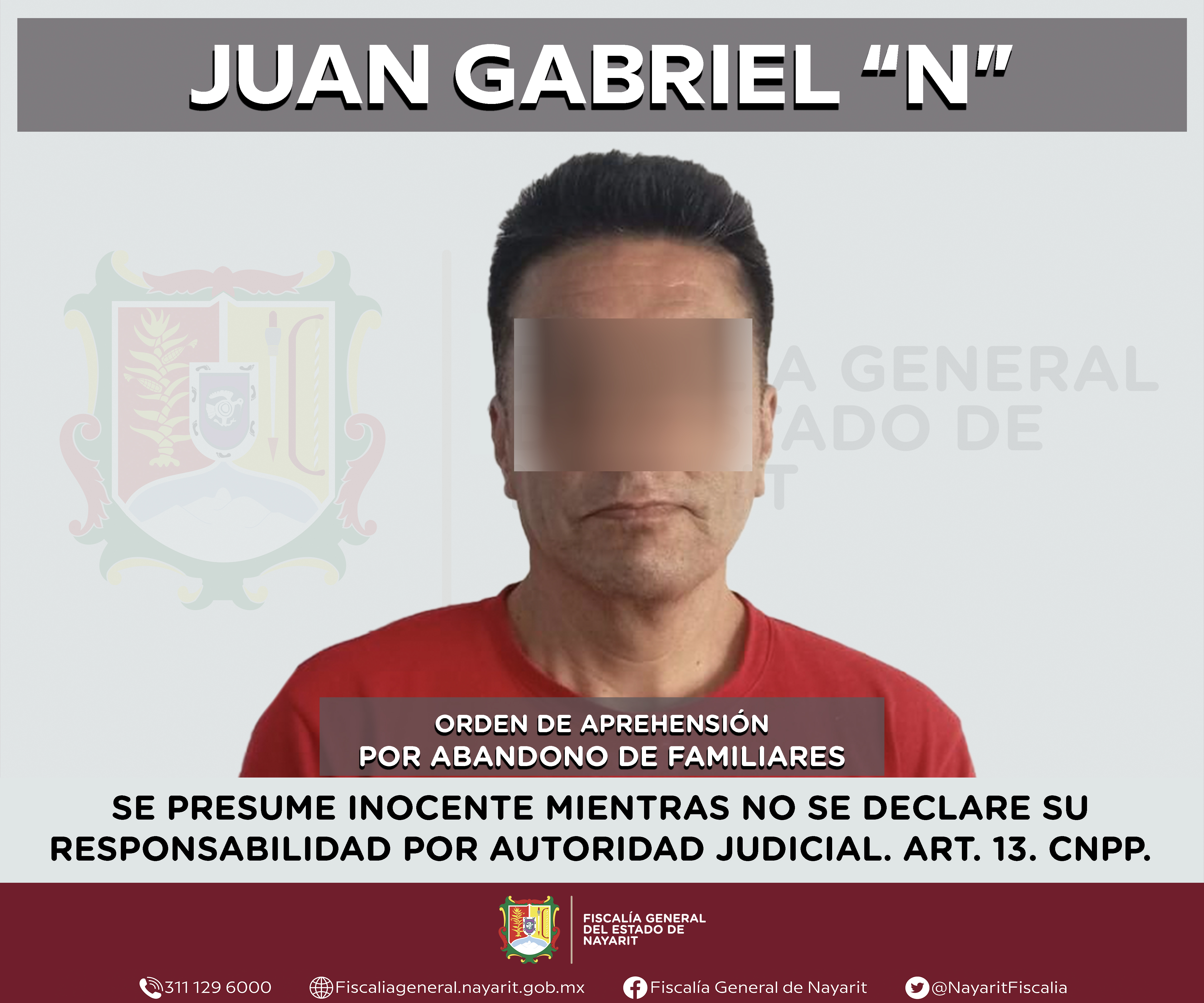 La Fiscalía General de Nayarit a través de la Agencia de Investigación Criminal ejecutó una orden de aprehensión en la ciudad de Tepic contra Juan Gabriel “N”, por su probable participación en hechos que para la ley configuran el delito de aban...