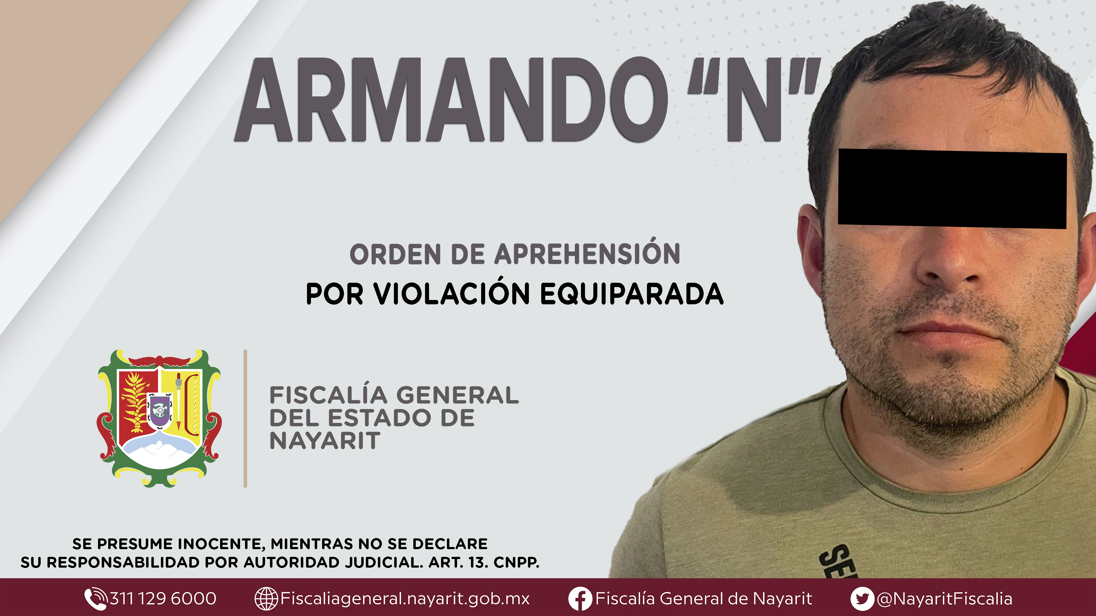 Elementos de la Agencia de Investigación Criminal de Nayarit ejecutaron una orden de aprehensión en el municipio de Santa María del Oro contra Armando “N”, por su presunta participación en hechos que según apreciación de la ley encuadran el del...