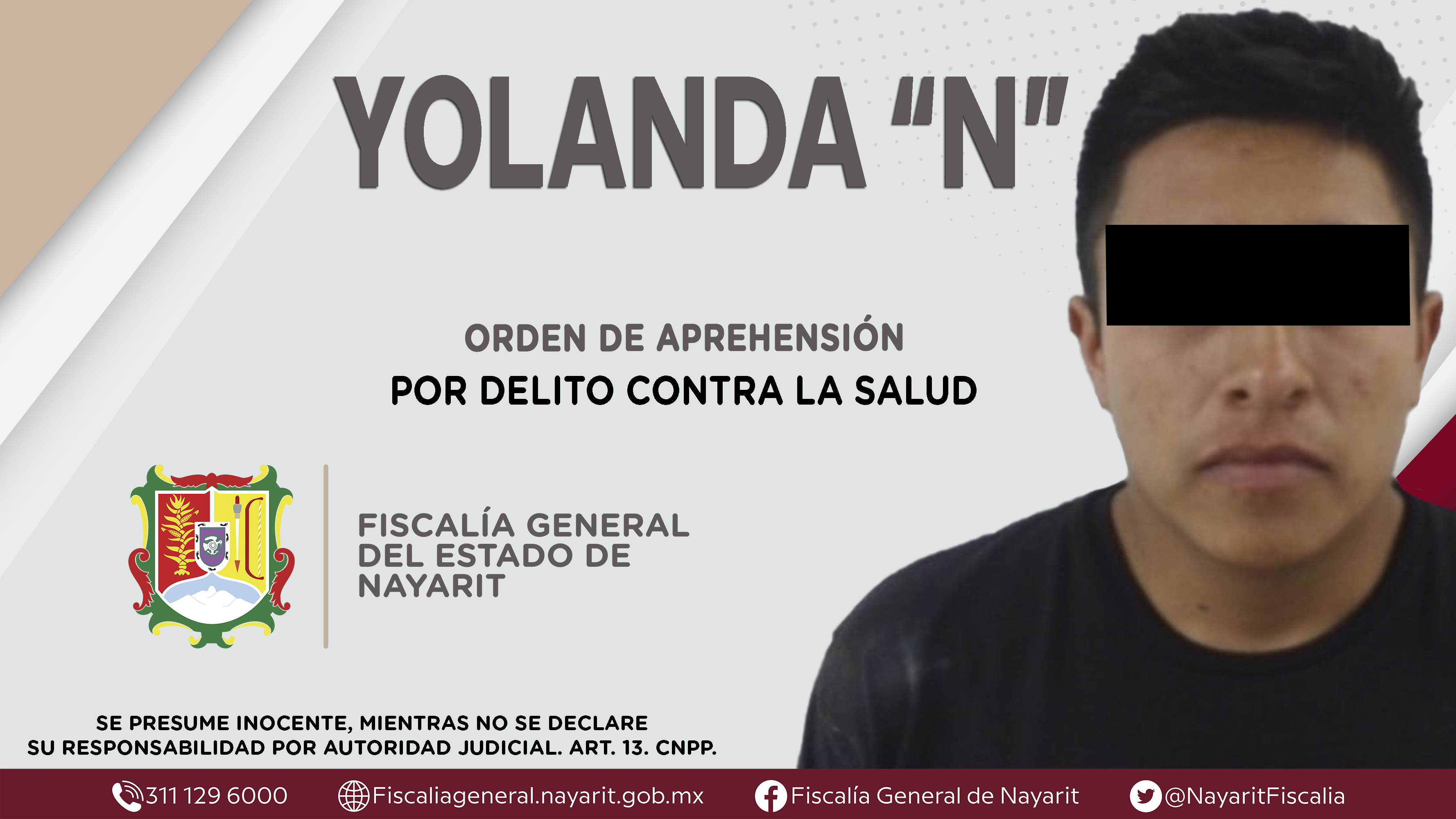 La Fiscalía General de Nayarit a través de la Agencia de Investigación Criminal dio cumplimiento a una orden de aprehensión en la ciudad de Tepic contra Yolanda “N”, por su presunta participación en hechos que según apreciación de la ley encua...