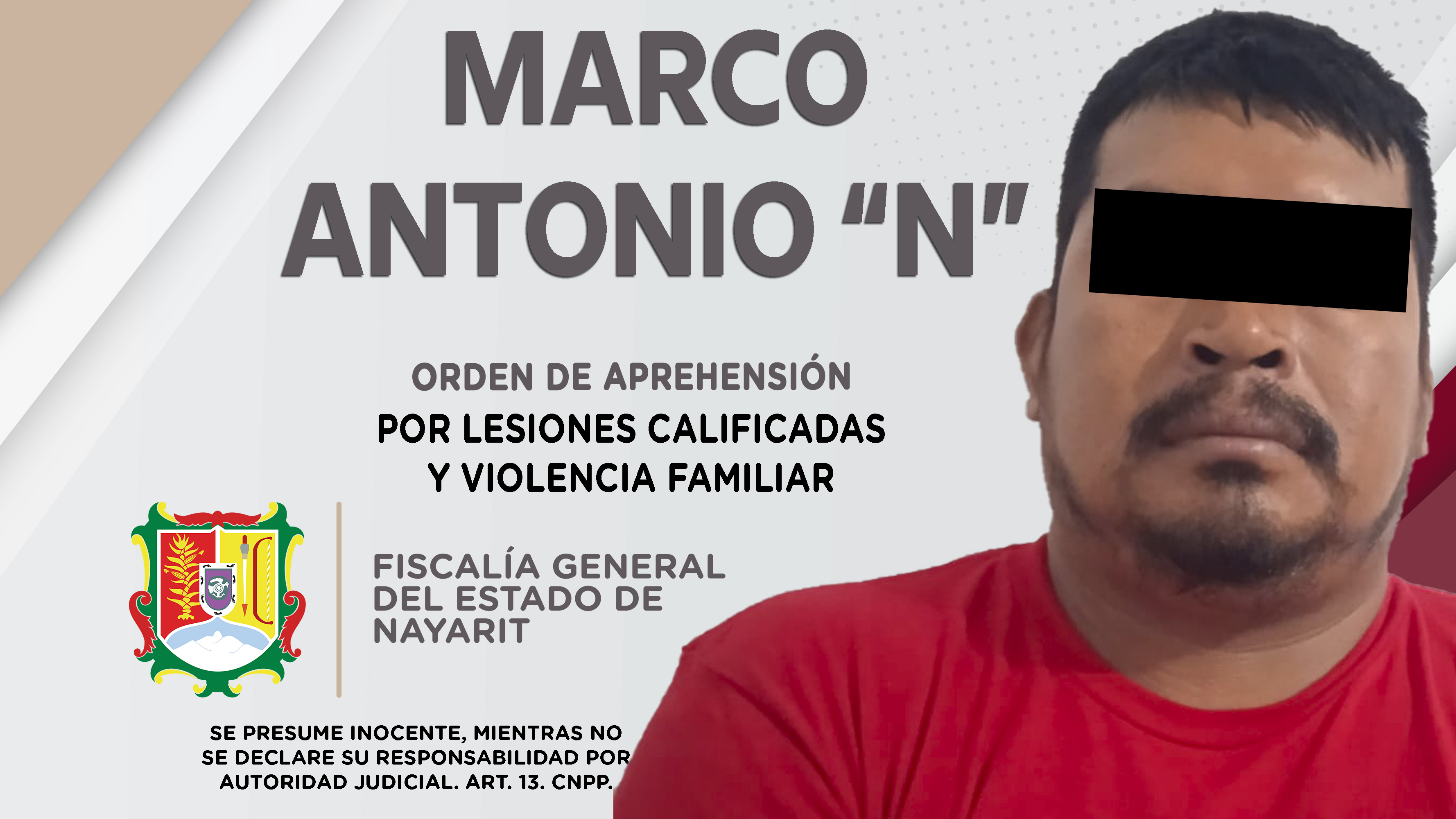 En el poblado Cerro Blanco, municipio de Santa María del Oro, elementos de la Agencia de Investigación Criminal cumplimentaron una orden de aprehensión contra Marco Antonio “N”, como presunto responsable de los delitos de violencia familiar y lesi...