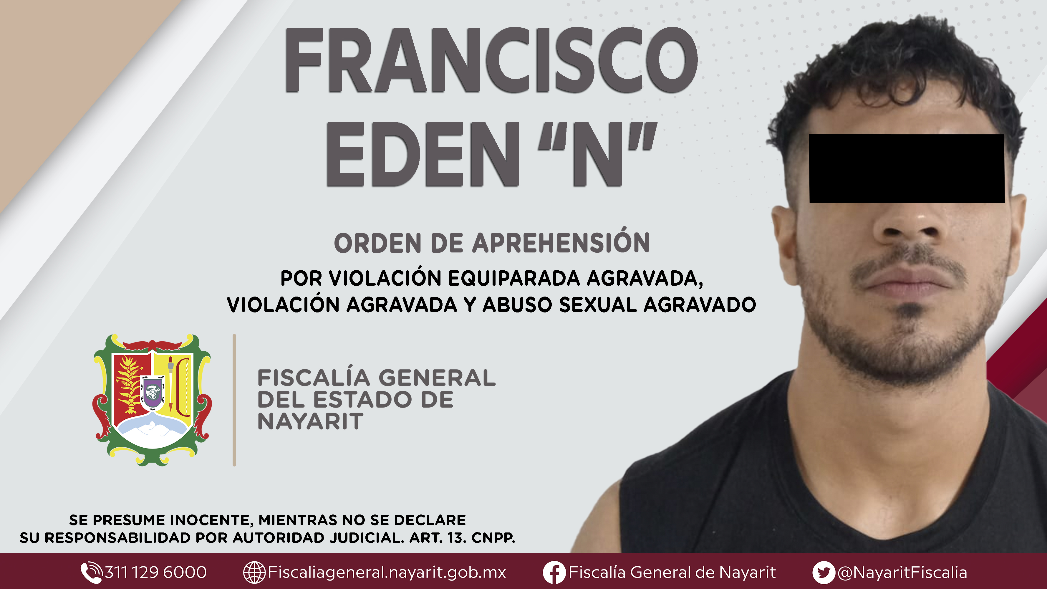 En colaboración con la Fiscalía General del estado de Sonora, la Fiscalía General de Nayarit a través de la Agencia de Investigación Criminal ejecutó una orden de aprehensión en el municipio de Acaponeta contra Francisco Eden “N”, por su presu...
