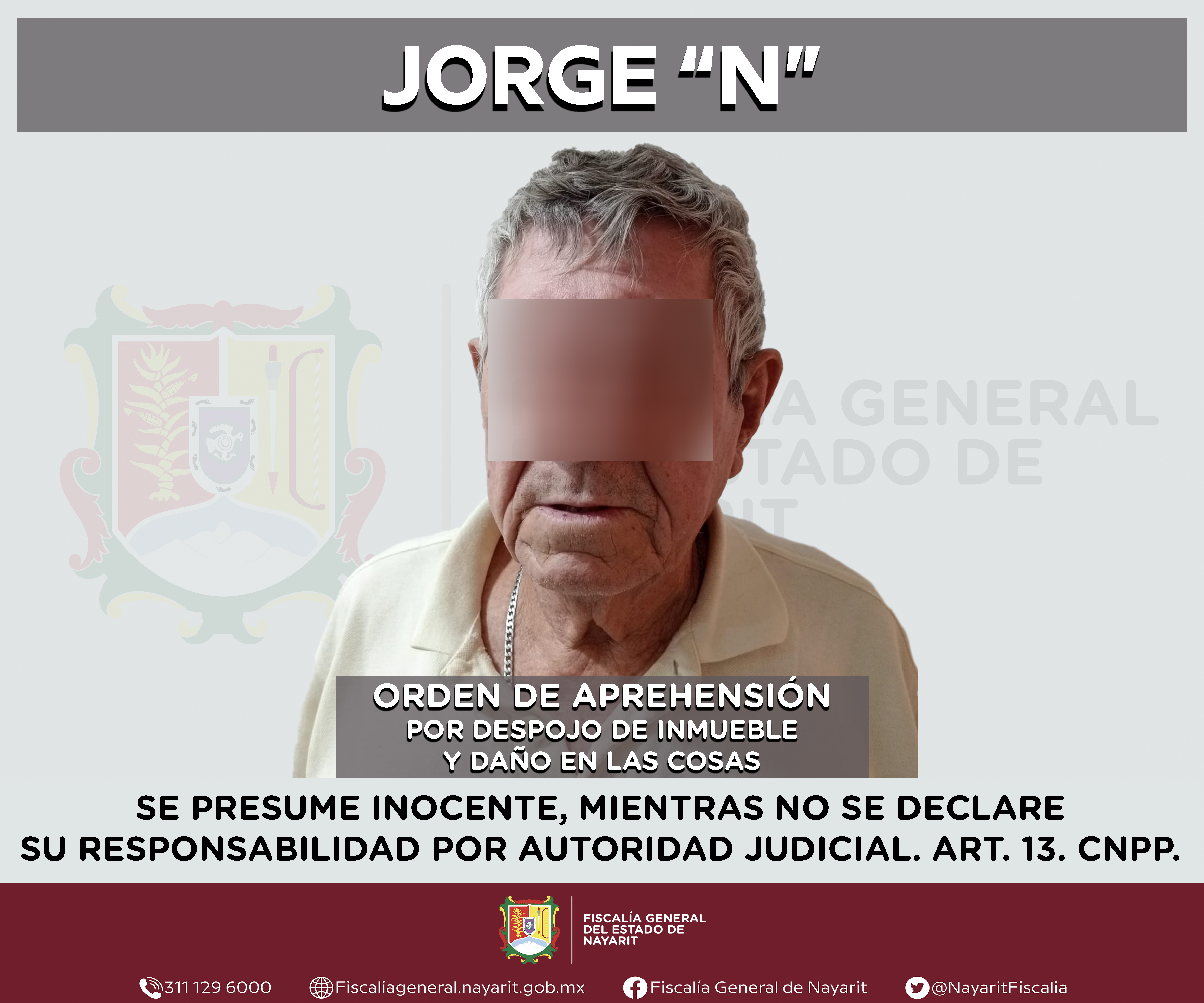 Elementos de la Agencia de Investigación Criminal de Nayarit ejecutaron una orden de aprehensión en el municipio de Compostela contra Jorge “N”, por su presunta participación en hechos que según apreciación de la ley encuadran el delito de despo...