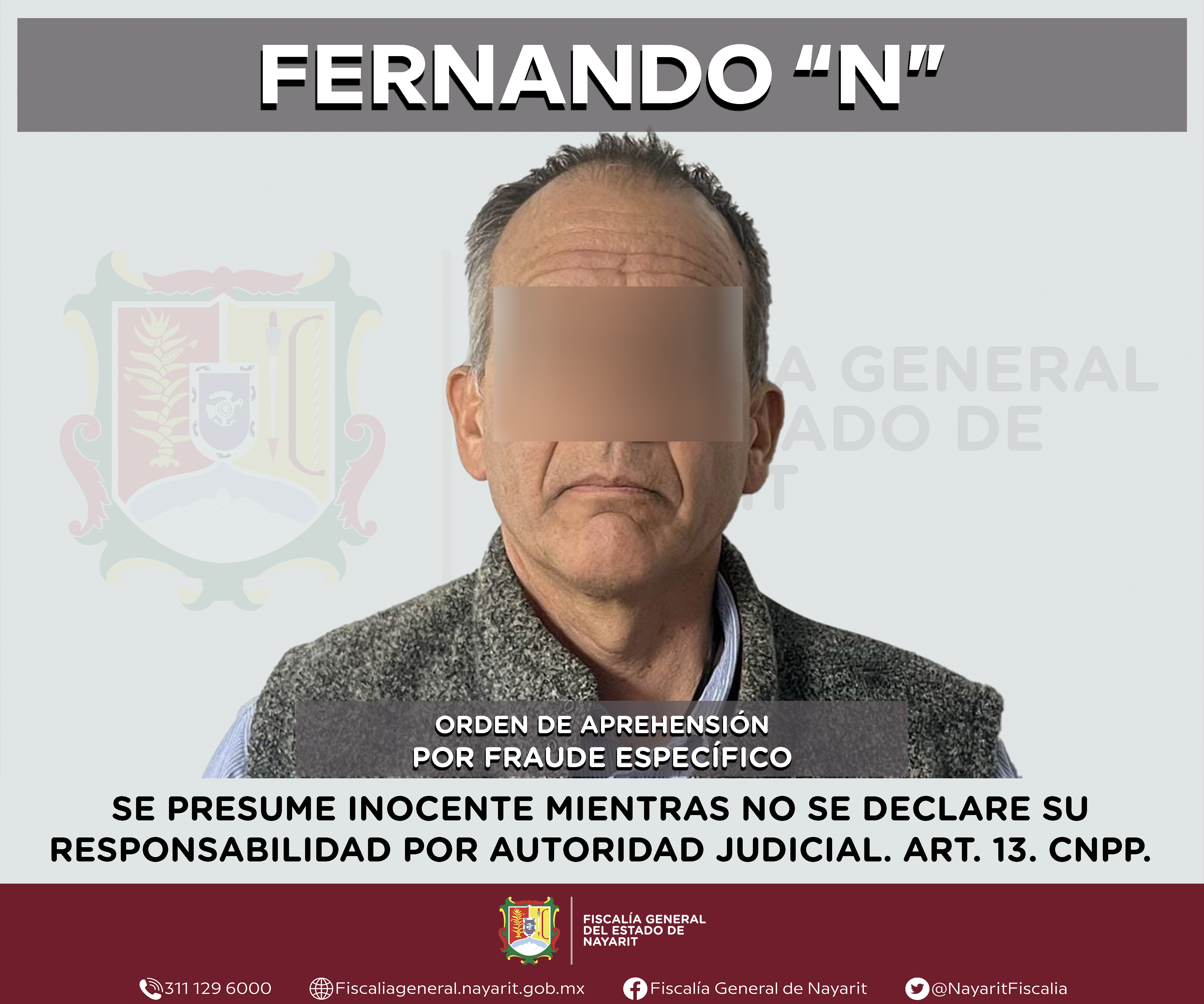 Elementos de la Agencia de Investigación Criminal de Nayarit ejecutaron una orden de aprehensión en la ciudad de Tepic contra Fernando “N”, por su presunta participación en hechos que según apreciación de la ley encuadran el delito de fraude esp...
