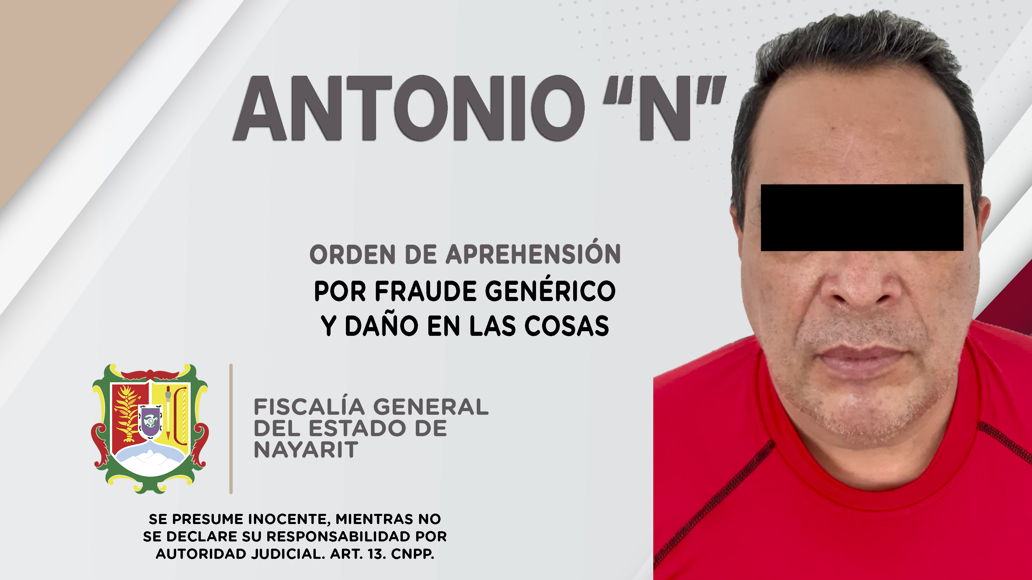Fiscalía General de Nayarit a través de la Agencia de Investigación Criminal, ejecutó dos órdenes de aprehensión contra Antonio “N”, la primera por su probable responsabilidad penal en hechos que para la ley constituyen el delito de fraude gen...