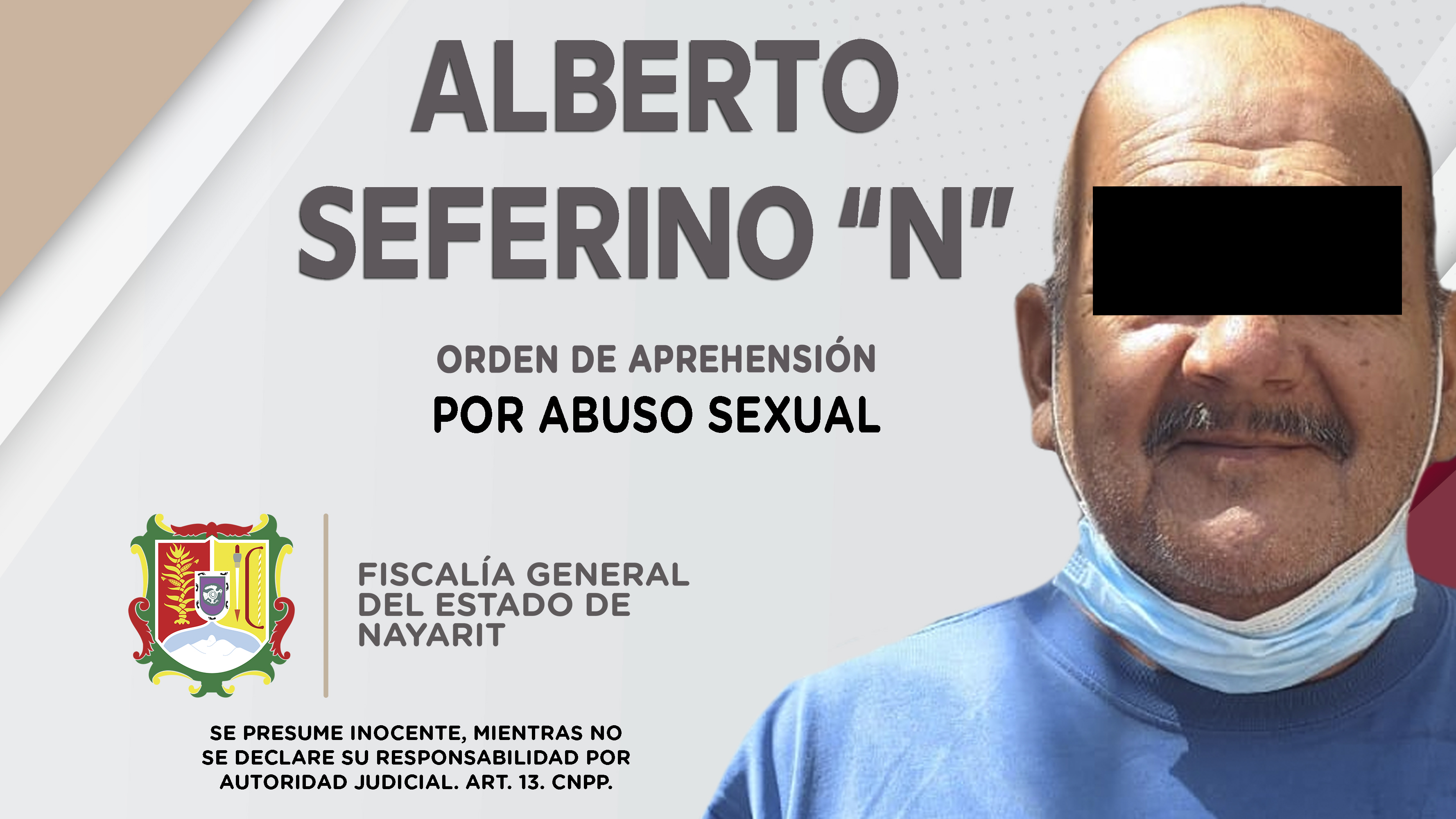 La Fiscalía General del Estado a través de la Agencia de Investigación Criminal, en colaboración con la Fiscalía General del estado de Baja California, consiguió detener en el poblado Villa Hidalgo, municipio de Santiago Ixcuintla, a Alberto Seferi...