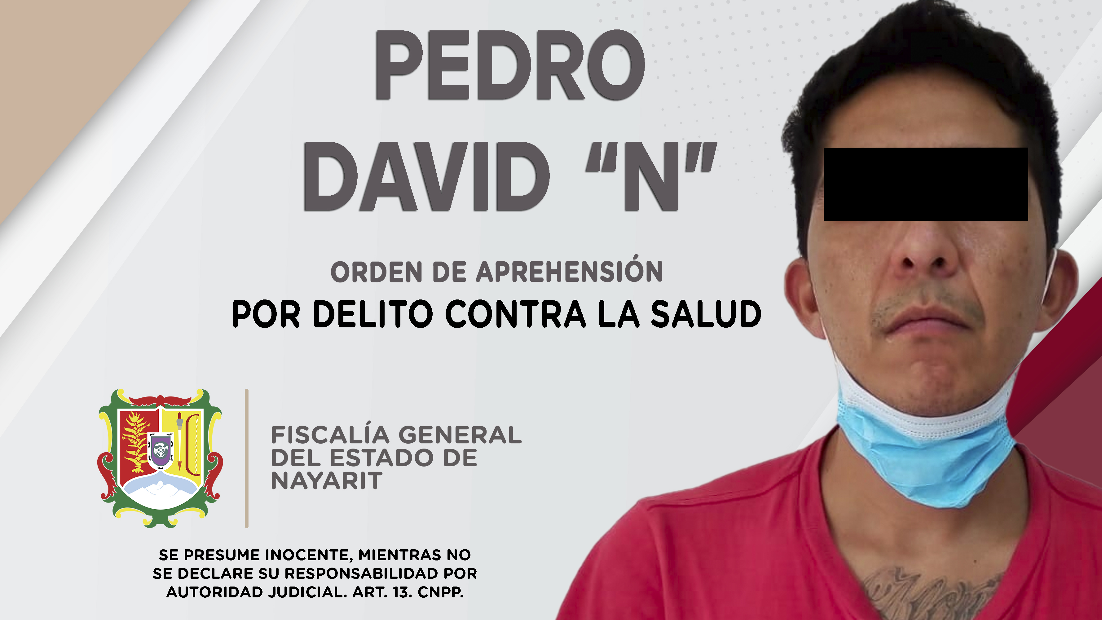 En la capital nayarita, elementos de la Agencia de Investigación Criminal cumplimentaron una orden de aprehensión contra Pedro David “N”, como presunto responsable del delito contra la salud en su modalidad de narcomenudeo en su hipótesis de poses...