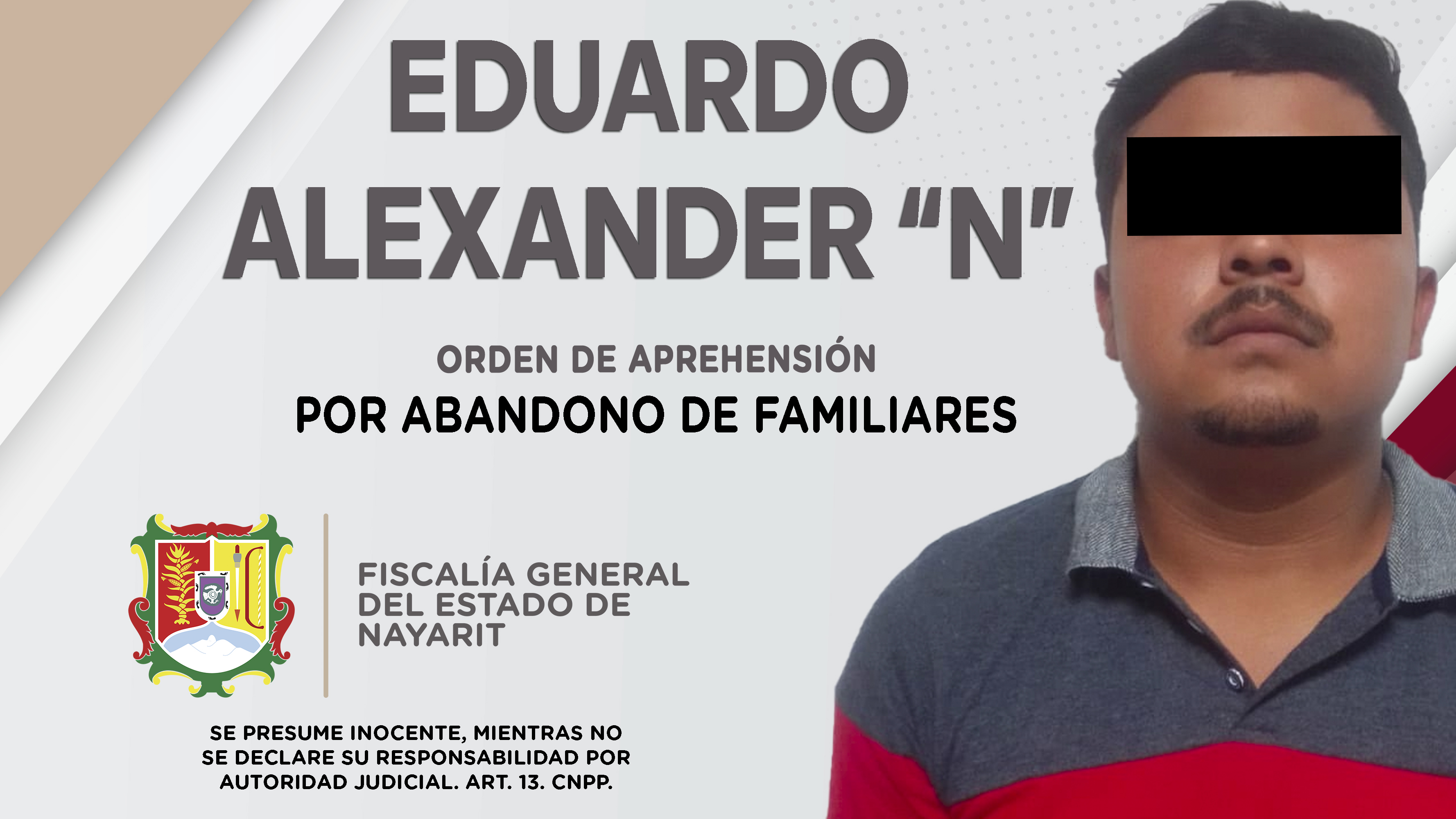 Personal de la Agencia de Investigación Criminal de Nayarit ejecutó una orden de aprehensión en la capital nayarita contra Eduardo Alexander “N”, por su tentativa responsabilidad penal en hechos que según apreciación de la ley constituyen el del...