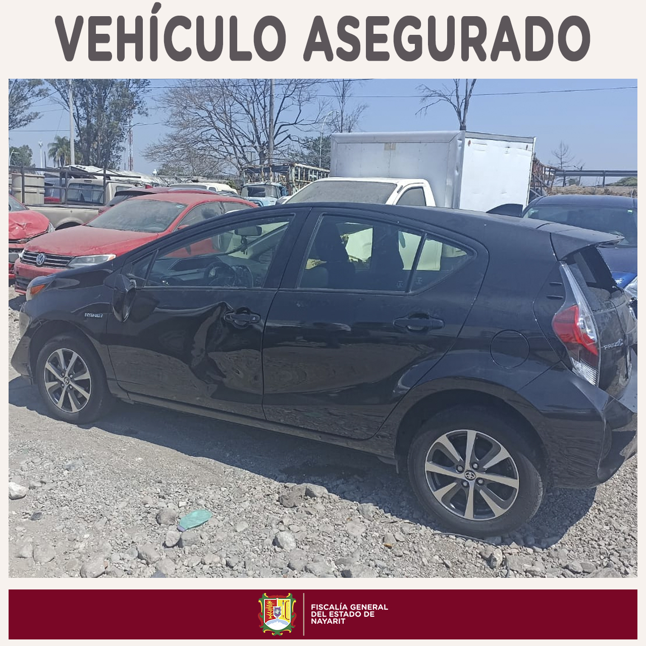 Elementos de la Unidad de Robo de Vehículos aseguraron un automóvil en la ciudad de Tepic, el cual cuenta con reporte de robo vigente. Dicha unidad es de la marca Toyota, tipo Prius, modelo 2021, color negro, placas de circulación YTB-315-A del estado...