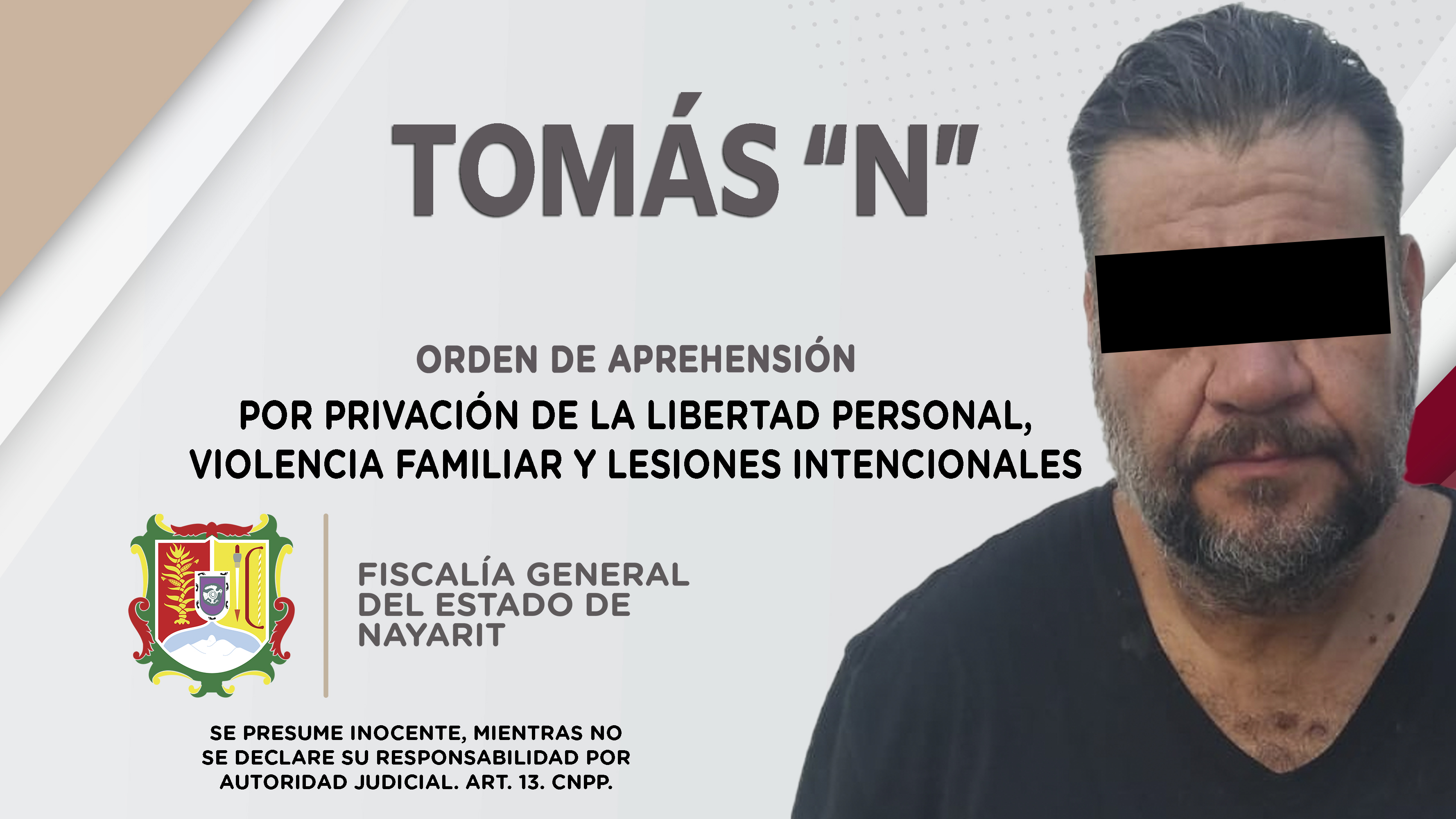 Elementos de la Agencia de Investigación Criminal ejecutaron una orden de aprehensión en el poblado Valle de Banderas, municipio de Bahía de Banderas contra Tomás “N”, como presunto responsable de los delitos de privación de la libertad personal...