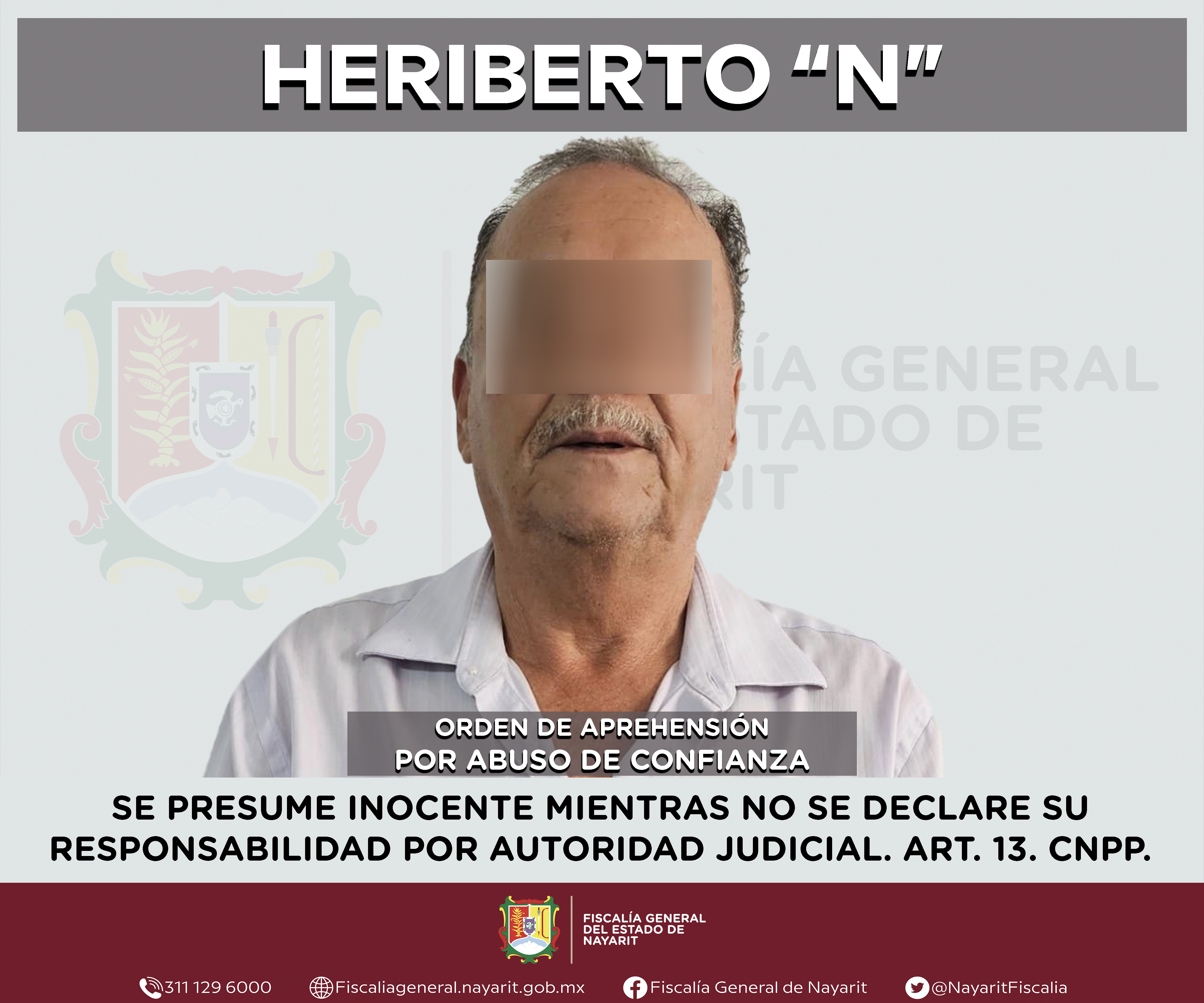 Elementos de la Agencia de Investigación Criminal de Nayarit ejecutaron una orden de aprehensión en la ciudad de Tepic contra Heriberto “N”, por su presunta participación en hechos que según apreciación de la ley encuadran el delito de abuso de ...
