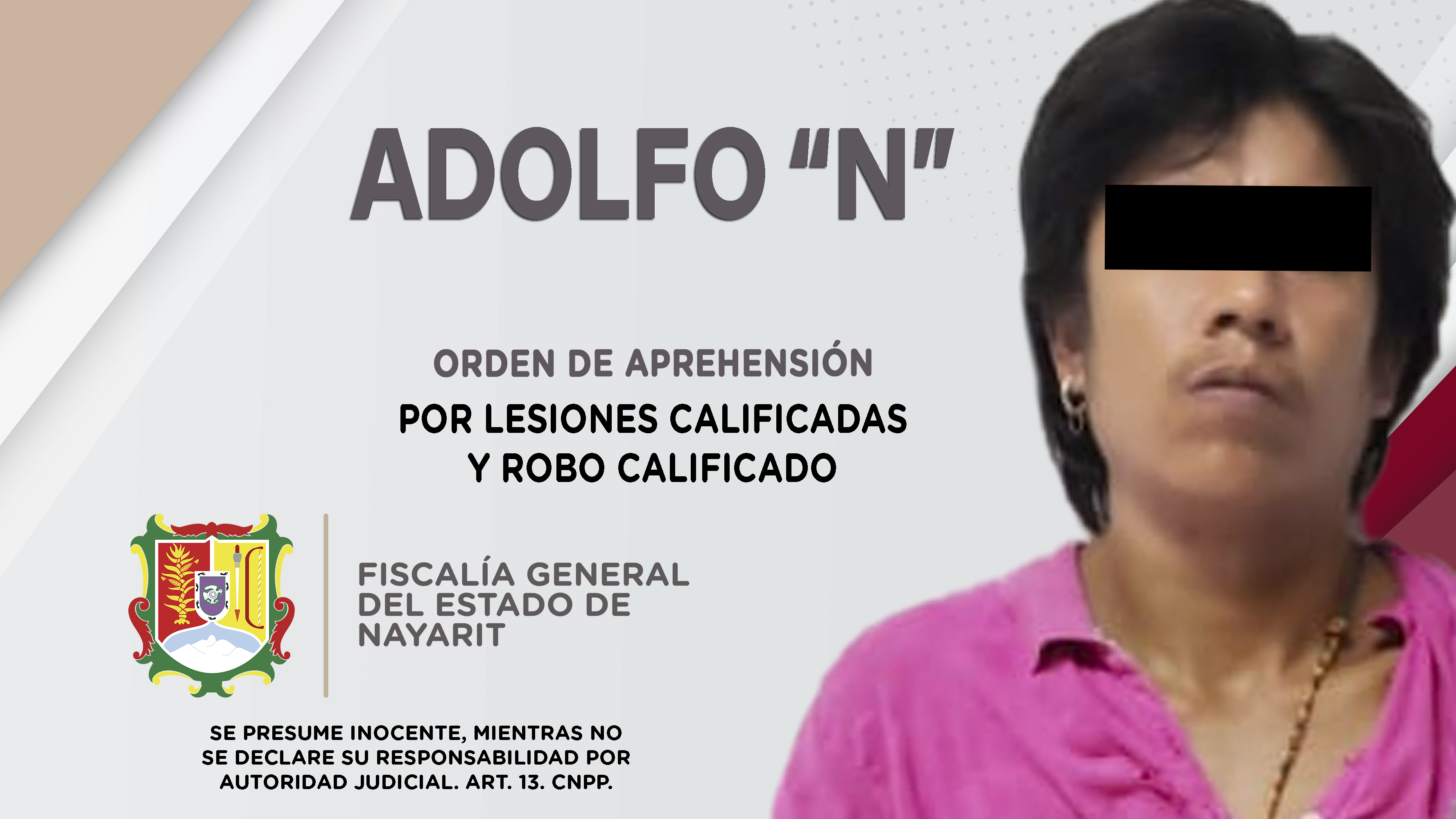 En el municipio de Acaponeta, elementos de la Agencia de Investigación Criminal ejecutaron dos órdenes de aprehensión contra Adolfo “N”; la primera por su probable participación en hechos que para la ley constituyen el delito de lesiones califica...