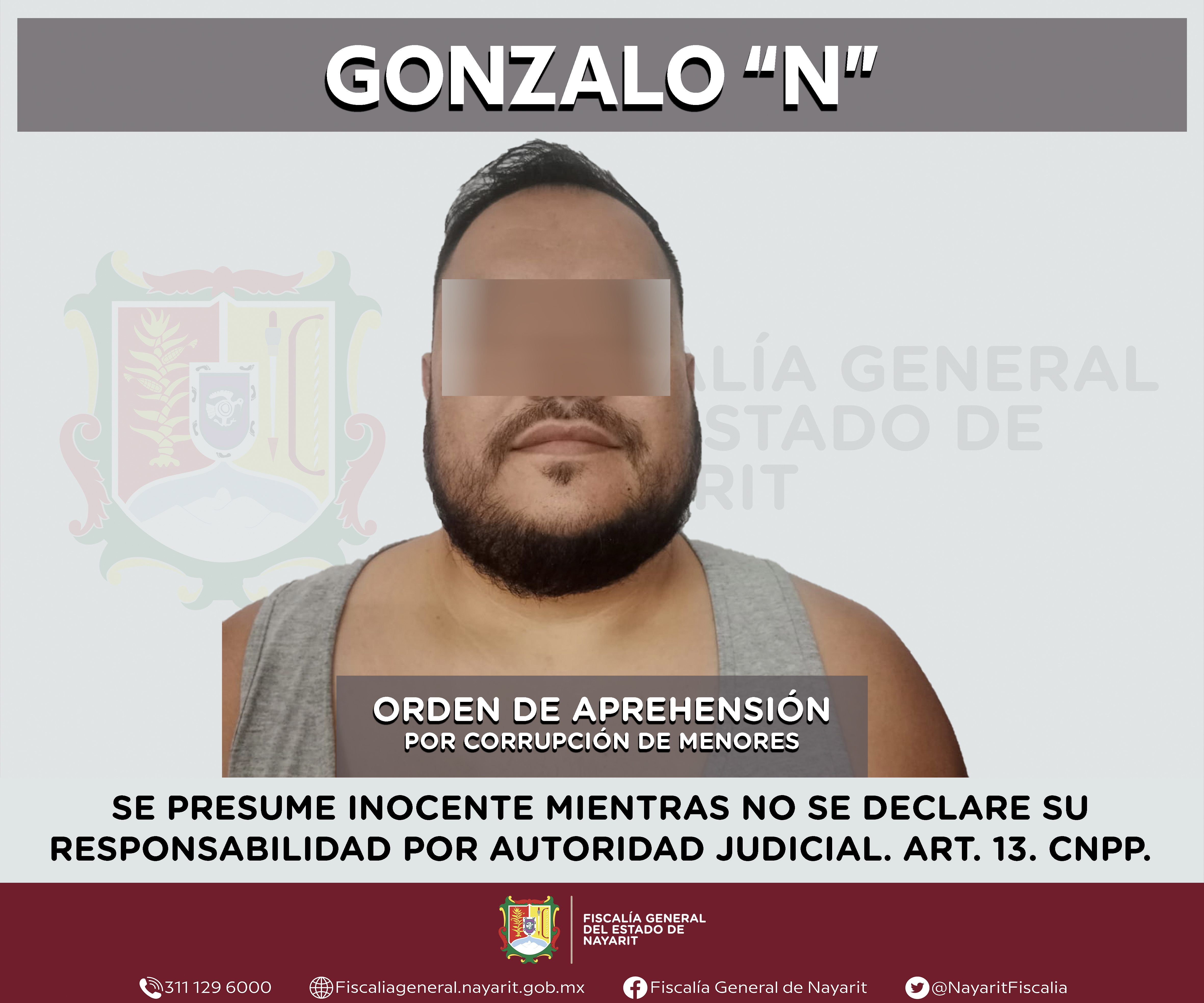 En la localidad San Juan de Abajo, municipio de Bahía de Banderas se cumplimentó una orden de aprehensión contra Gonzalo “N”, por su presunta participación en hechos que según apreciación de la ley encuadran el delito de corrupción de menores,...