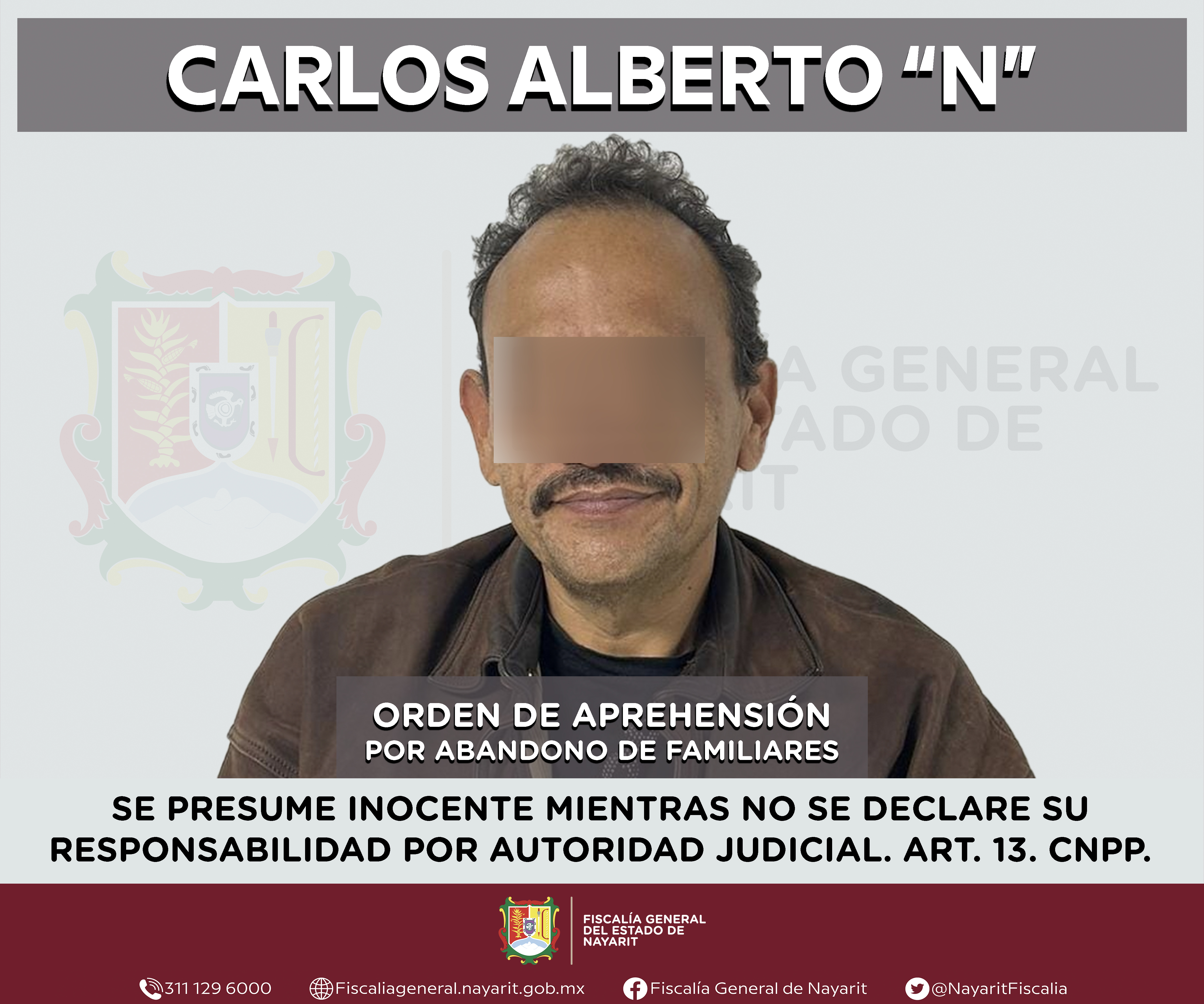 En la capital nayarita se cumplimentó una orden de aprehensión contra Carlos Alberto “N”, por su presunta participación en hechos que según apreciación de la ley configuran el delito de abandono de familiares, cometido en agravio de una niña de...