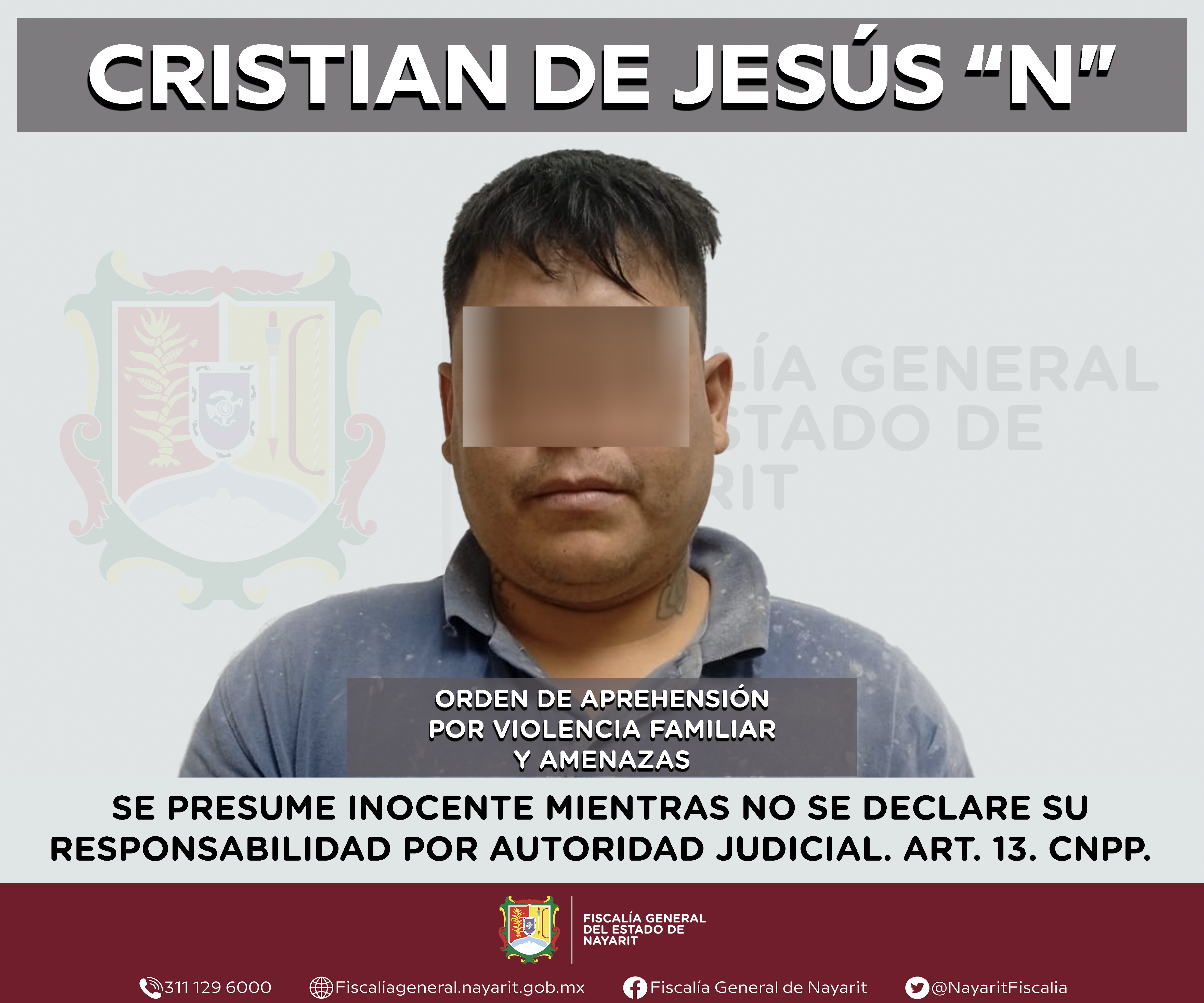 Elementos de la Agencia de Investigación Criminal de Nayarit ejecutaron una orden de aprehensión en el municipio de Tuxpan contra Cristian de Jesús “N”, por su probable participación en hechos que para la ley configuran los delitos de violencia f...