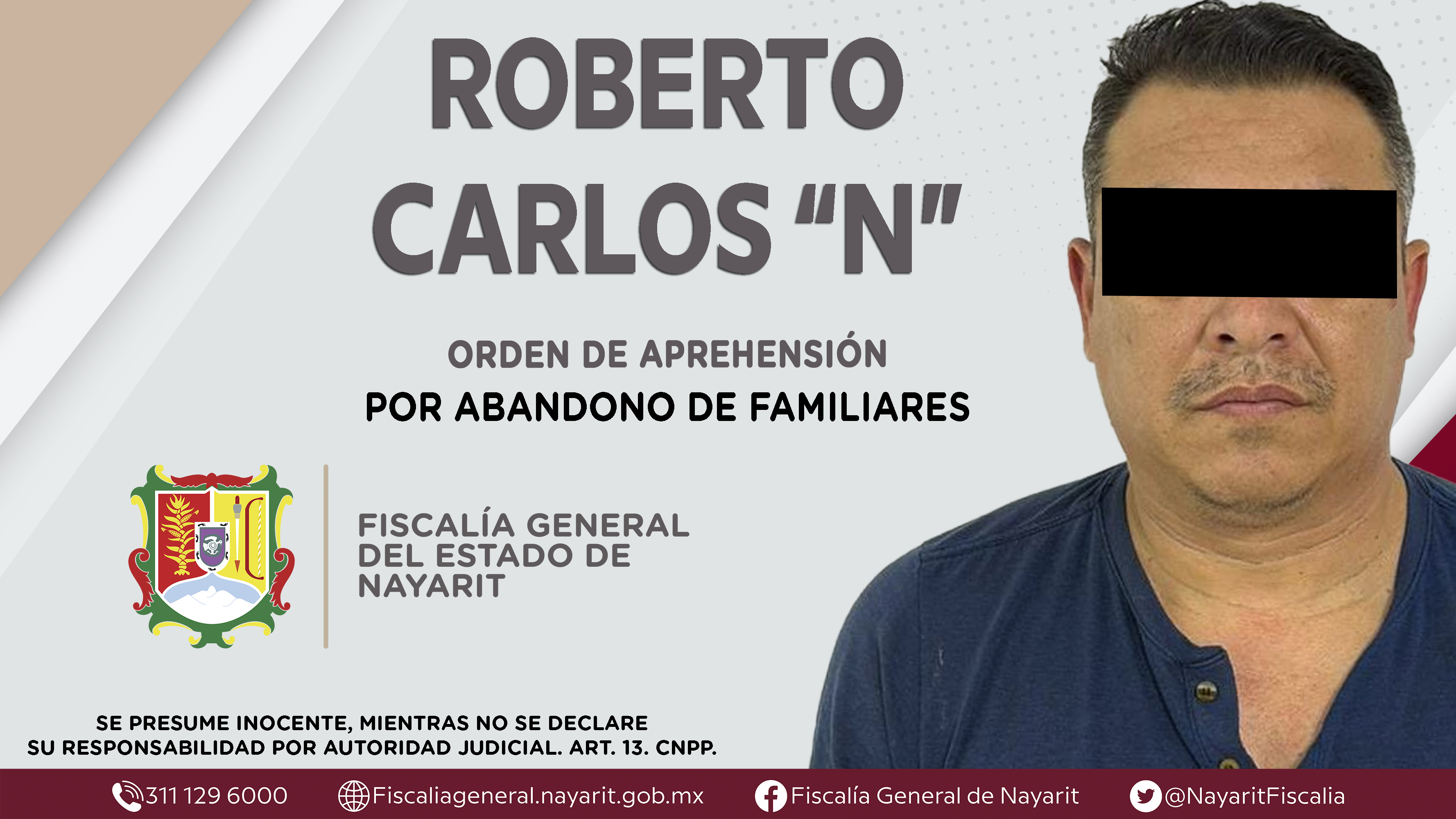 Elementos de la Agencia de Investigación Criminal de Nayarit ejecutaron una orden de aprehensión en la ciudad de Tepic contra Roberto Carlos “N”, por su presunta participación en hechos que según apreciación de la ley encuadran el delito de aban...