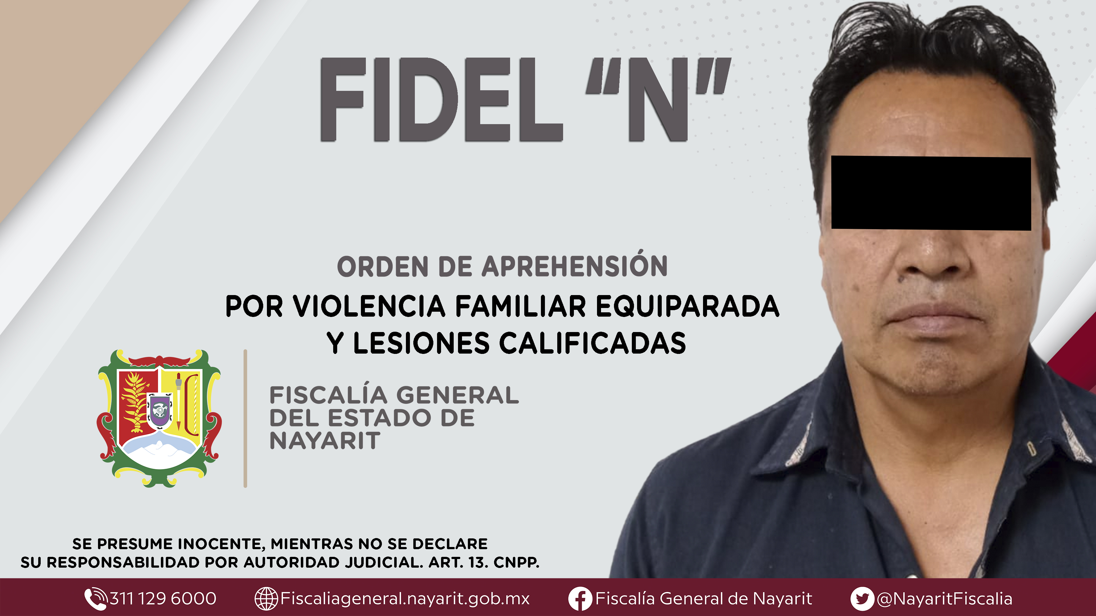 La Fiscalía General de Nayarit a través de la Agencia de Investigación Criminal dio cumplimiento a una orden de aprehensión en la ciudad de Tepic contra Fidel “N”, por su presunta participación en hechos que según apreciación de la ley encuadr...