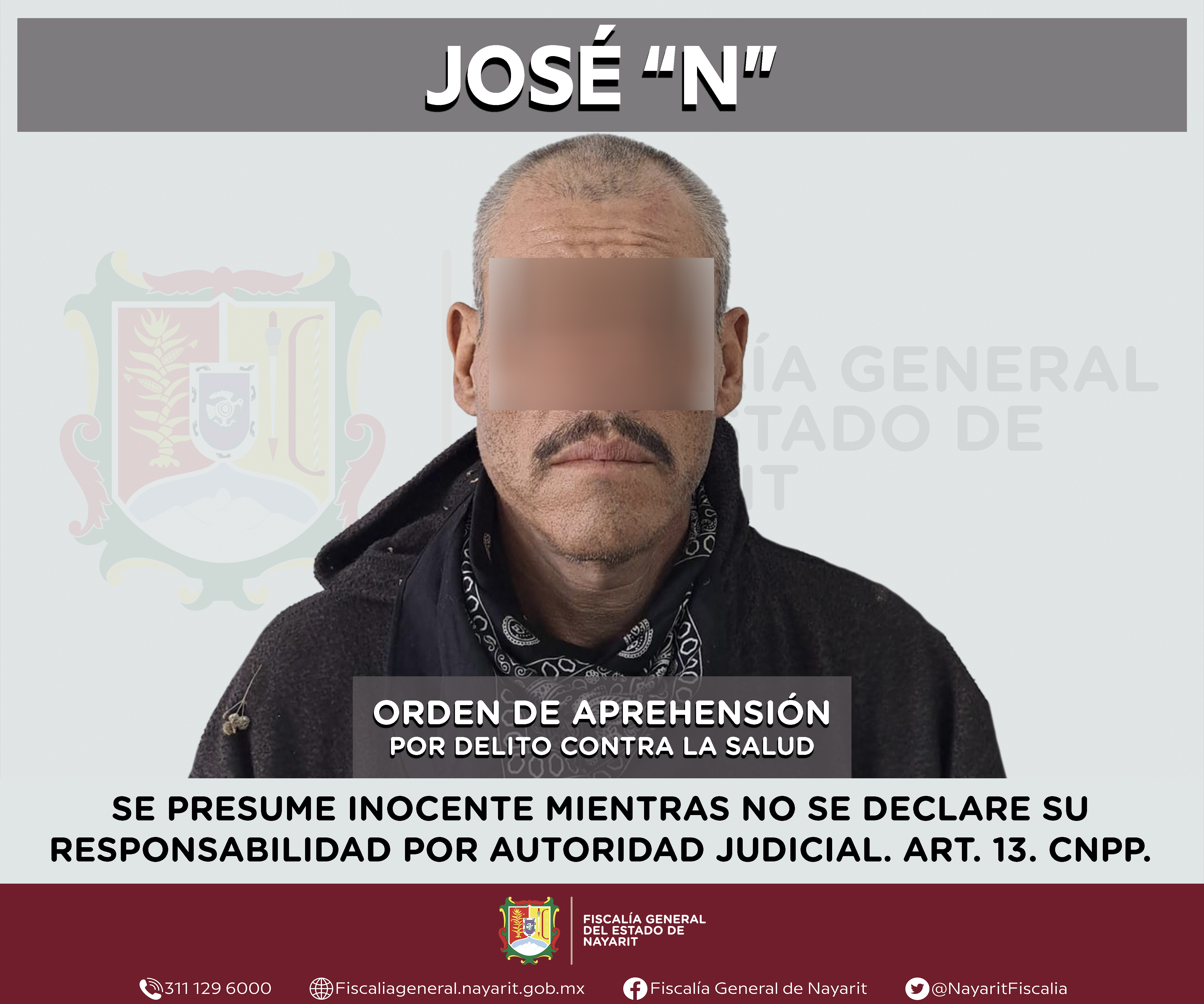 Elementos de la Agencia de Investigación Criminal de Nayarit ejecutaron una orden de aprehensión en la capital nayarita contra José “N”, por su presunta participación en hechos que según apreciación de la ley configuran el delito contra la salu...
