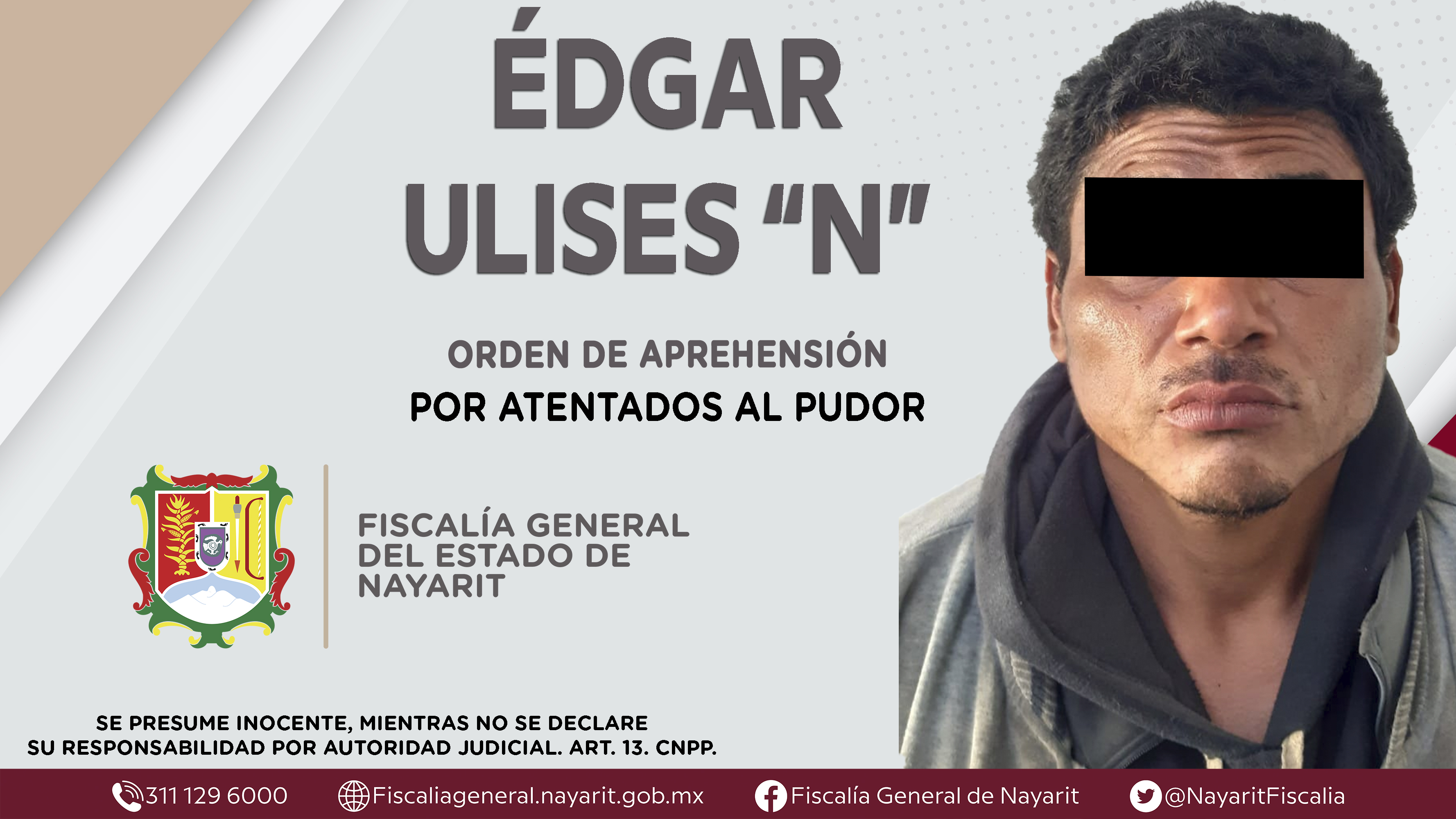 La Fiscalía General de Nayarit a través de la Agencia de Investigación Criminal dio cumplimiento a una orden de aprehensión en la ciudad de Tepic contra Édgar Ulises “N”, por su presunta participación en hechos que según apreciación de la ley...