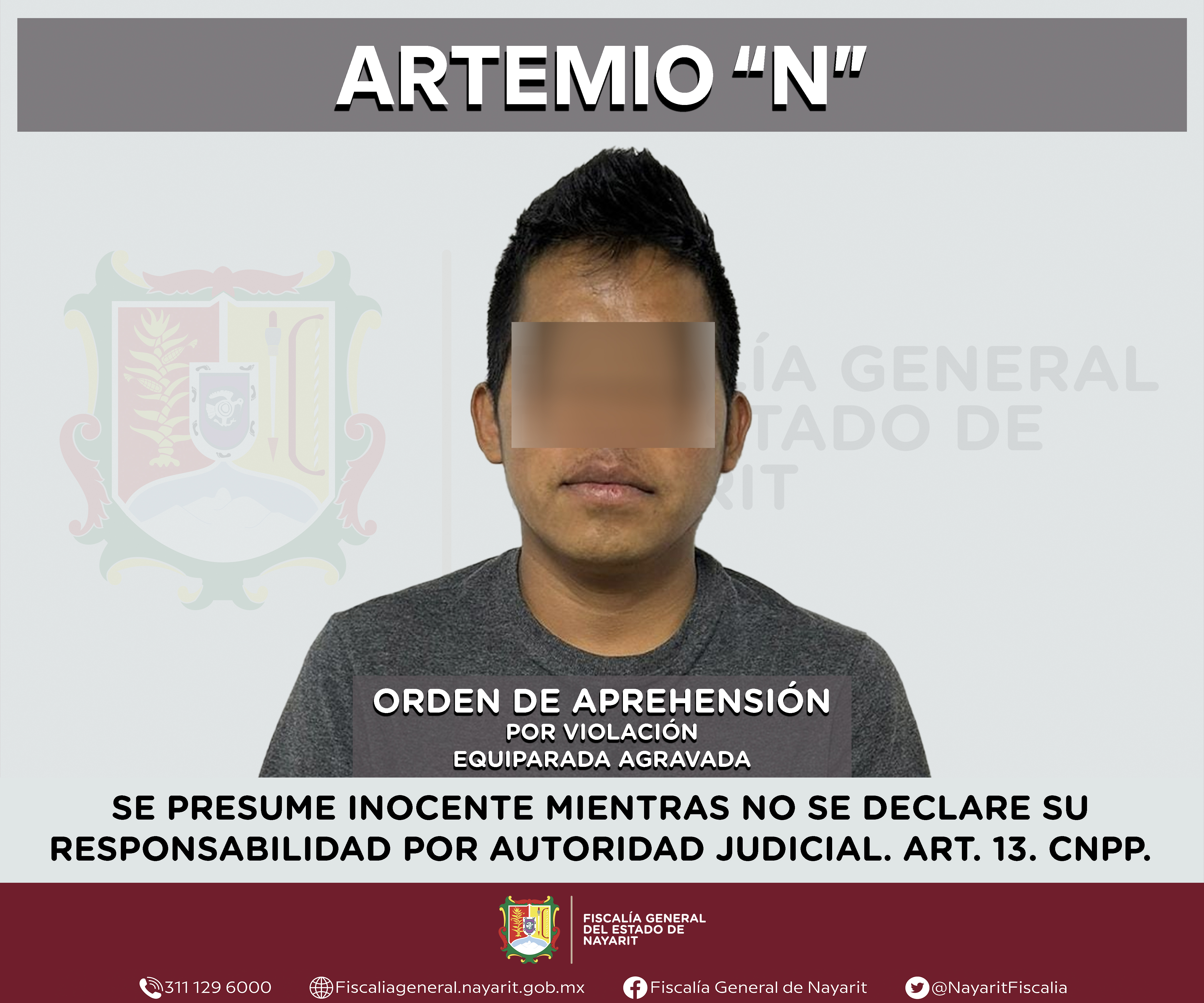 Elementos de la Agencia de Investigación Criminal de Nayarit ejecutaron una orden de aprehensión en la capital nayarita contra Artemio “N”, por su presunta participación en hechos que según apreciación de la ley configuran el delito de violació...