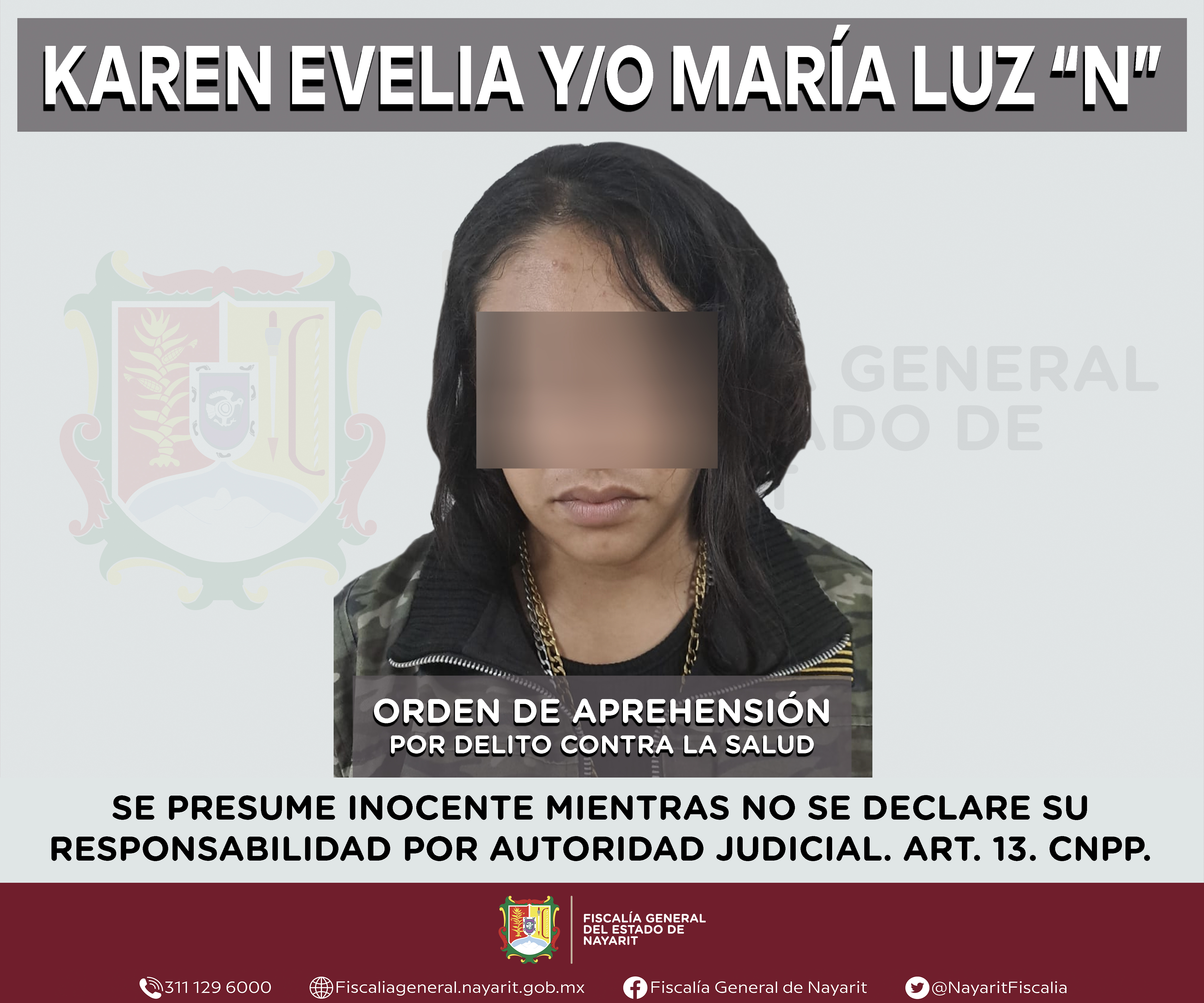 La Fiscalía General del estado de Nayarit a través de la Agencia de Investigación Criminal ejecutó una orden de aprehensión en la ciudad de Tepic contra Karen Evelia y/o María Luz “N”, por su presunta participación en hechos que según valorac...