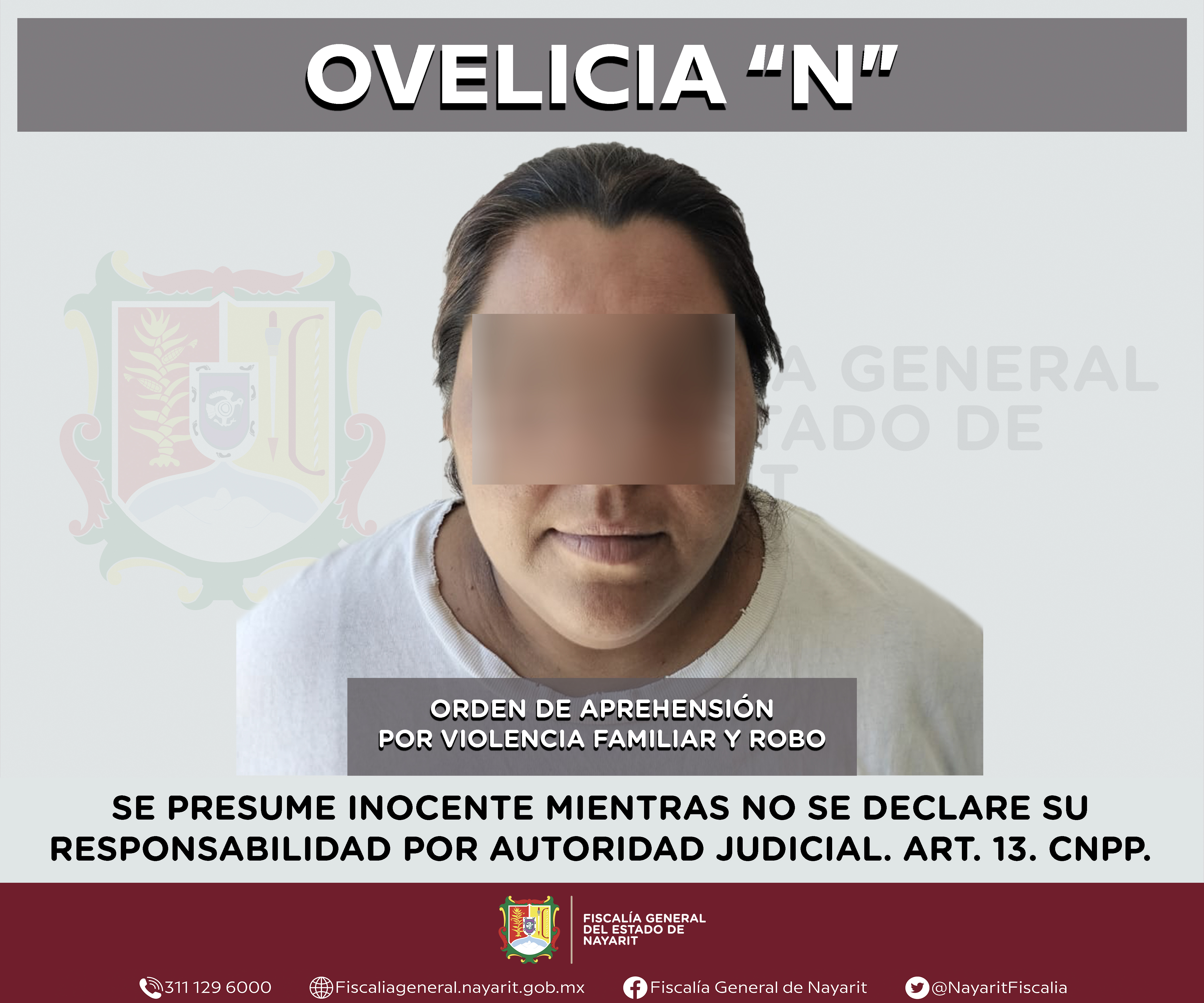 \r\nLa Fiscalía General de Nayarit a través de la Agencia de Investigación Criminal ejecutó una orden de aprehensión en el municipio de Ixtlán del Río contra Ovelicia “N”, por su presunta participación en hechos que según apreciación de la ...