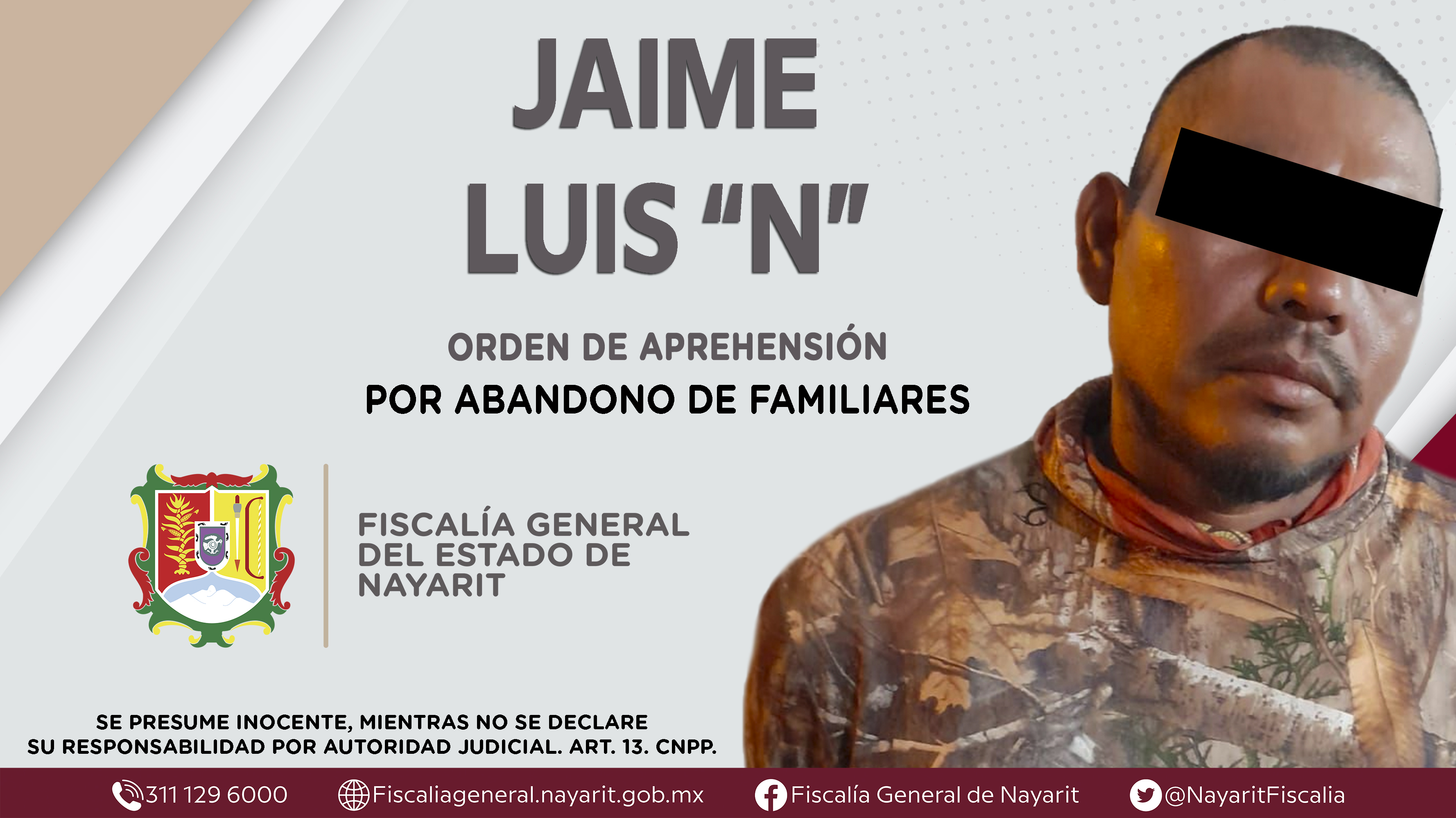 La Fiscalía General de Nayarit a través de la Agencia de Investigación Criminal dio cumplimiento a una orden de aprehensión en el municipio de Tuxpan contra Jaime Luis “N”, por su presunta participación en hechos que según apreciación de la le...
