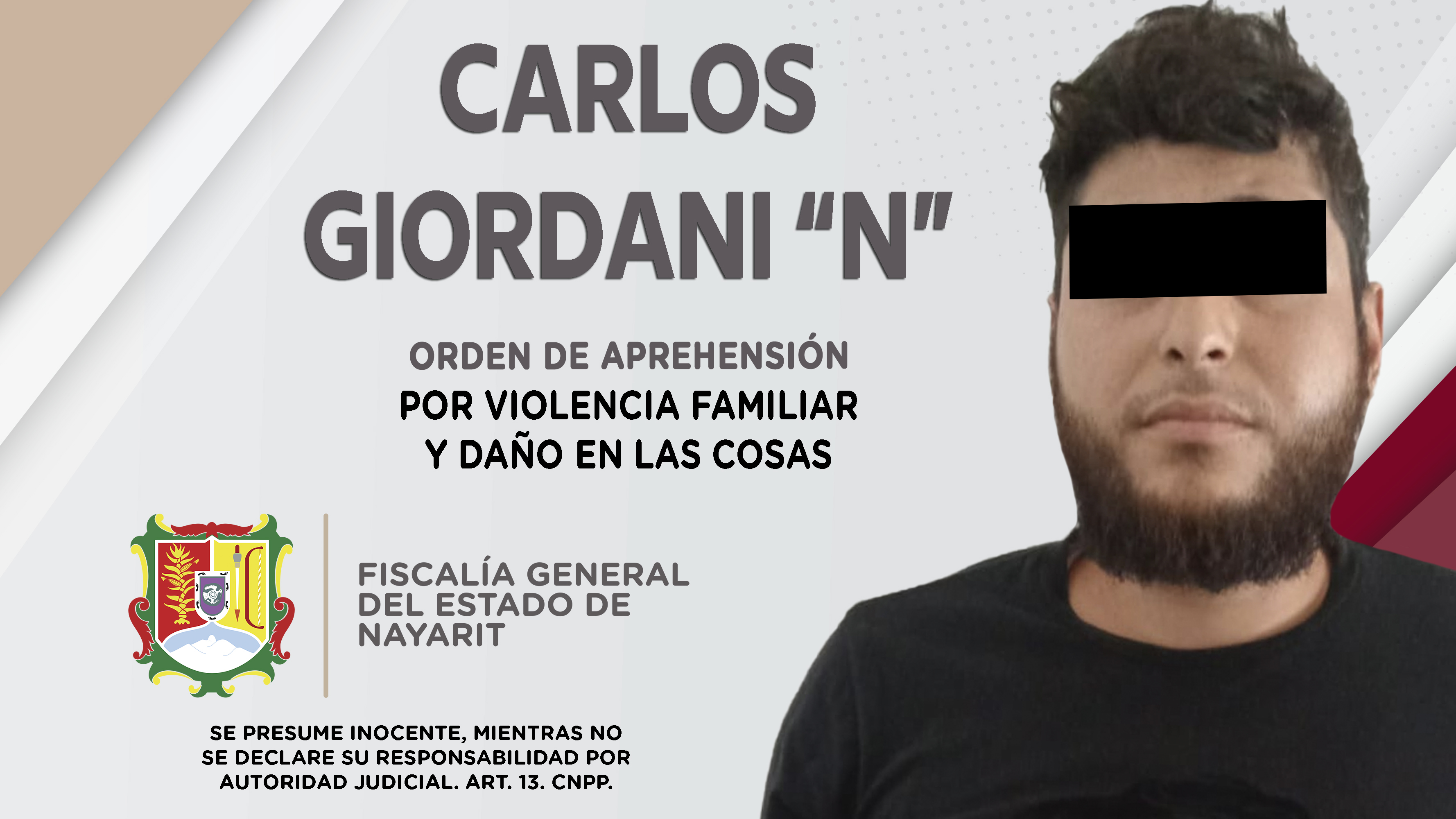 Elementos de la Agencia de Investigación Criminal ejecutaron una orden de aprehensión en el municipio de Bahía de Banderas contra Carlos Giordani “N”, por su presunta participación en hechos que según apreciación de la ley encuadran los delitos...