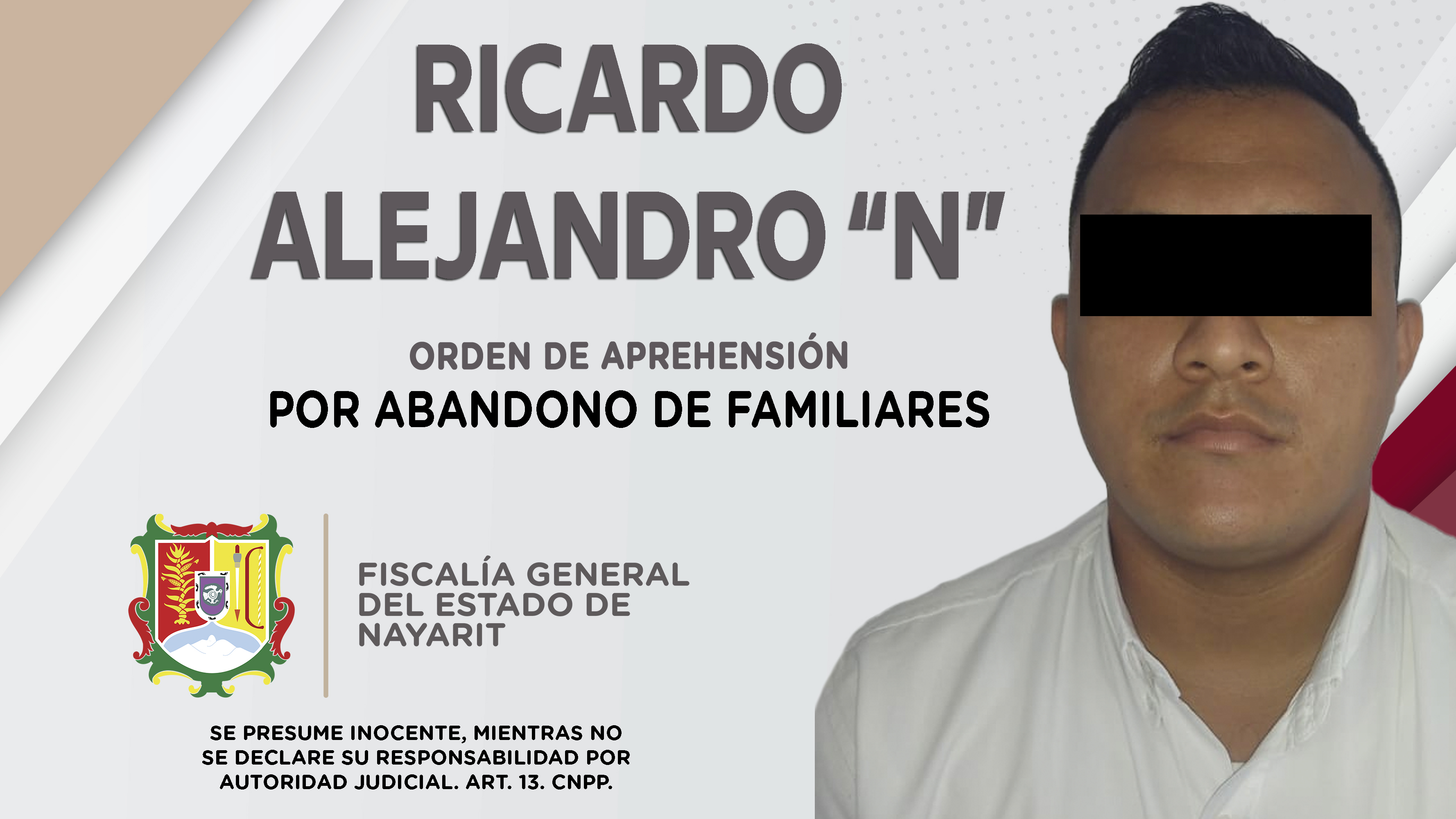 Elementos de la Agencia de Investigación Criminal ejecutaron una orden de aprehensión en el poblado Jarretaderas, municipio de Bahía de Banderas contra Ricardo Alejandro “N”, por su presunta participación en hechos que según apreciación de la l...