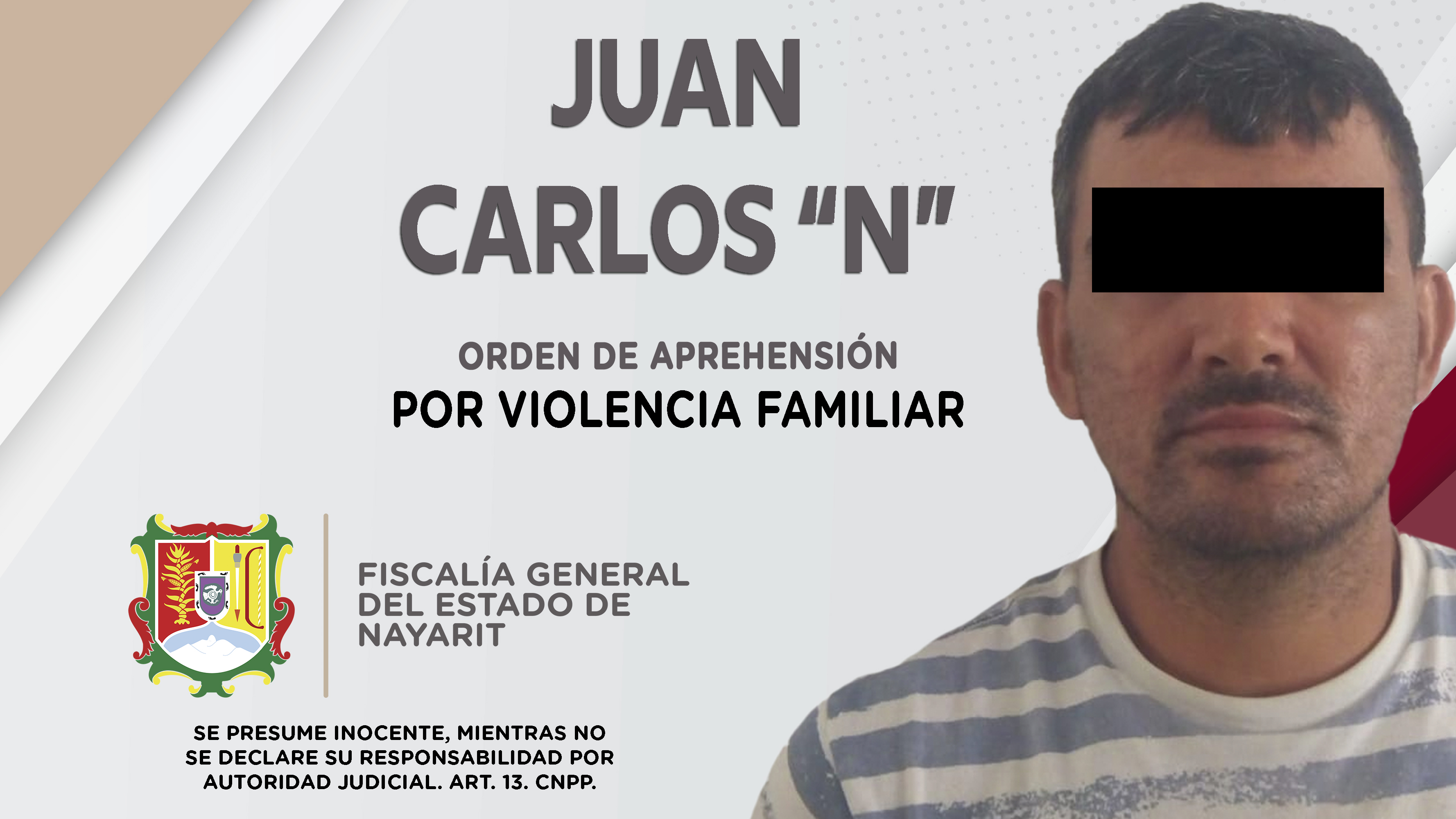 Fiscalía General de Nayarit a través de la Agencia de Investigación Criminal, ejecutó una orden de aprehensión en la localidad Punta de Mita, municipio de Bahía de Banderas contra Juan Carlos “N”, por su presunta participación en hechos que se...