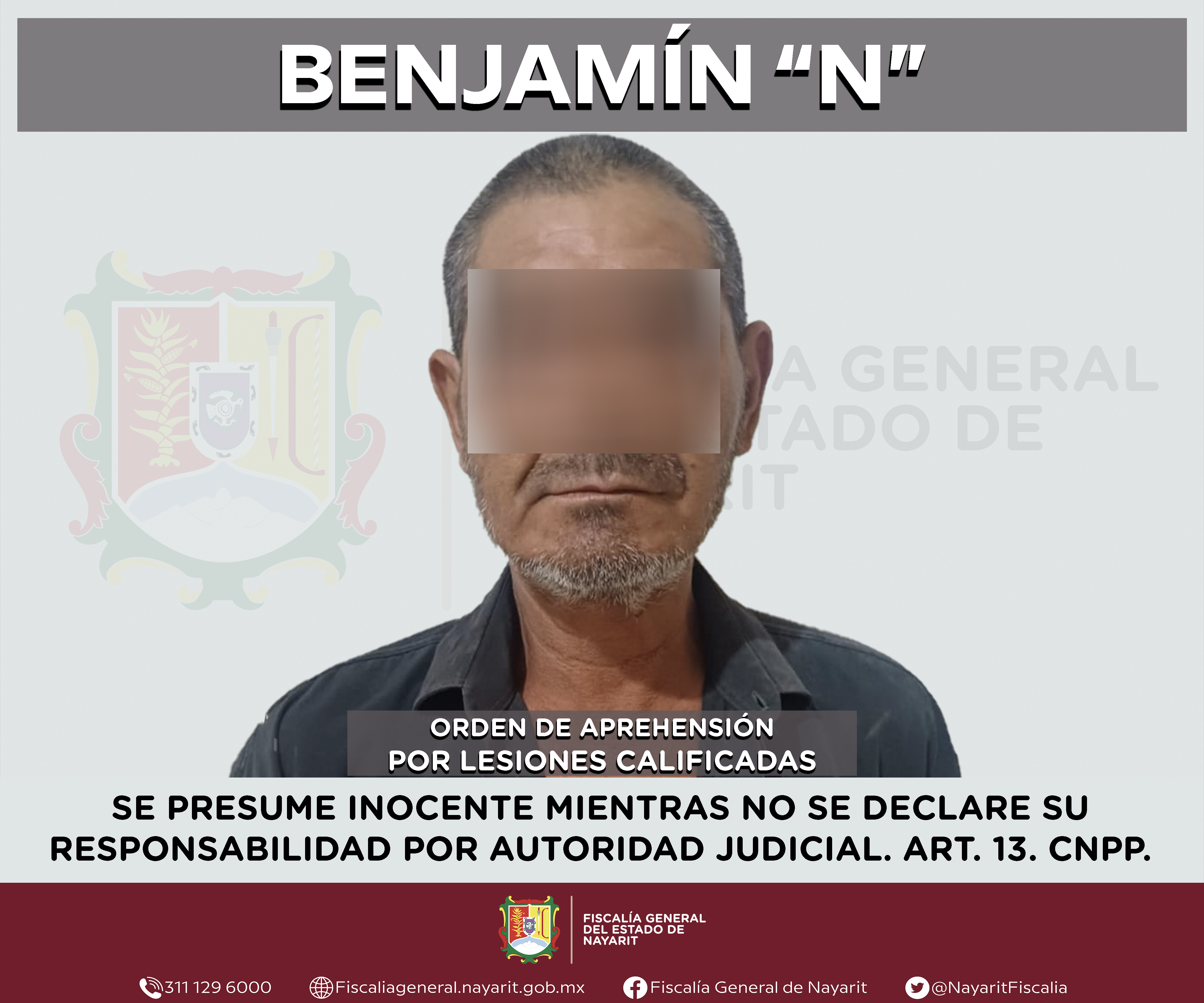 Elementos de la Agencia de Investigación Criminal de Nayarit ejecutaron una orden de aprehensión en el municipio de Tuxpan contra Benjamín “N”, por su probable participación en hechos que para la ley configuran el delito de lesiones calificadas, ...