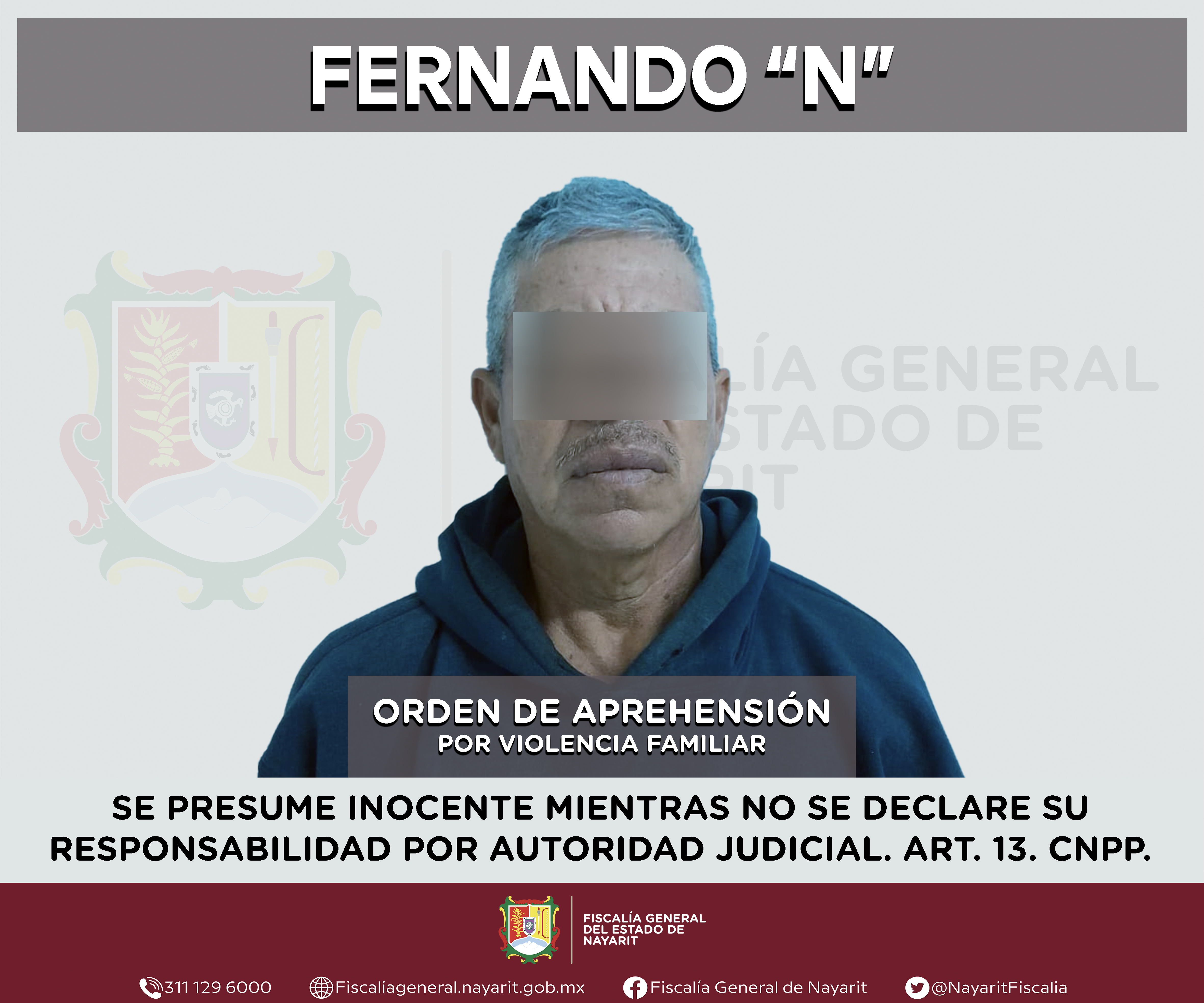 La Fiscalía General del estado de Nayarit a través de la Agencia de Investigación Criminal ejecutó una orden de aprehensión en la ciudad de Tepic contra Fernando “N”, por su presunta participación en hechos que según valoración de la ley encu...