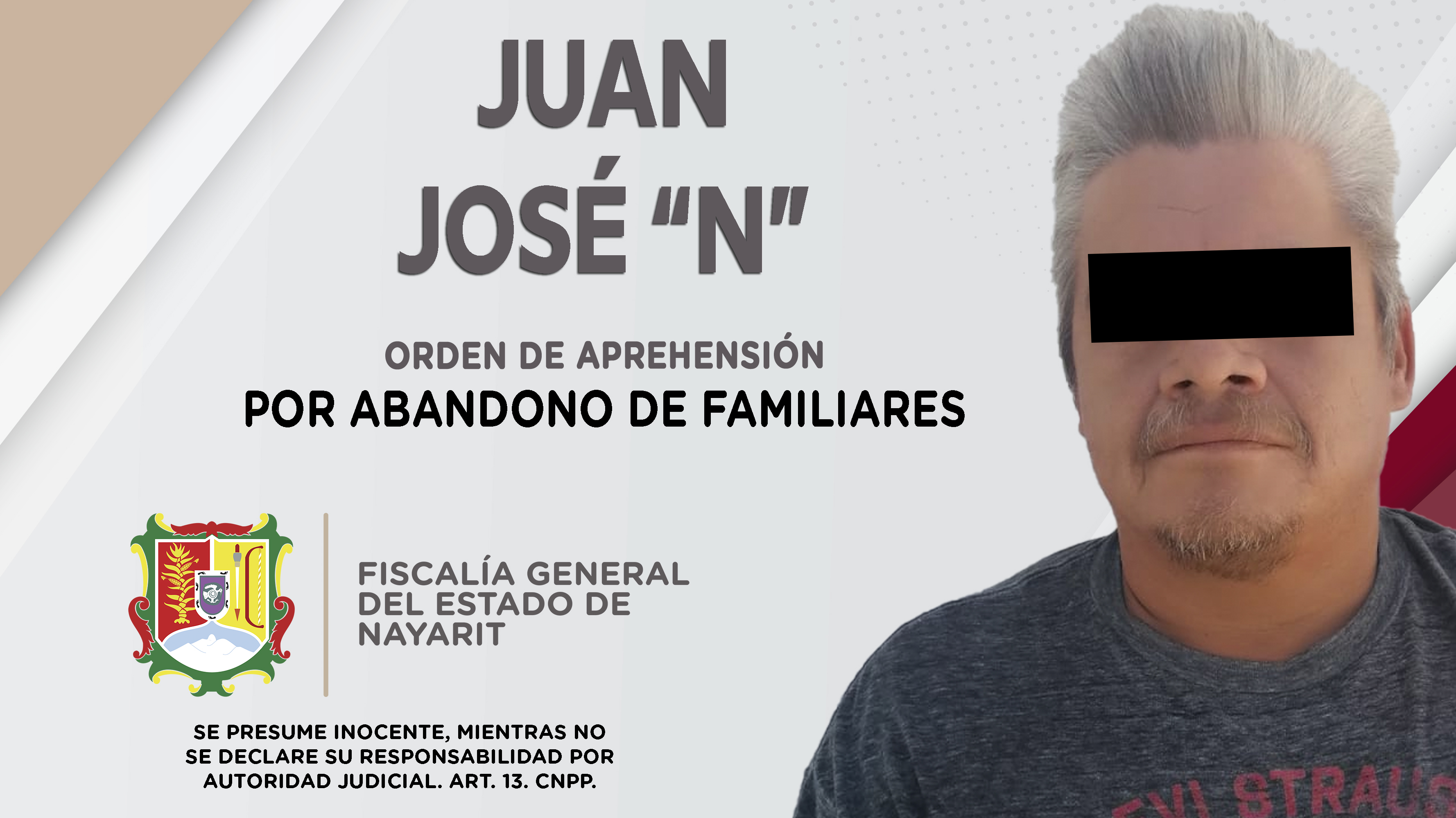 Personal de la Agencia de Investigación Criminal de Nayarit dio cumplimiento a una orden de aprehensión contra Juan José “N”, por su presuntiva responsabilidad penal en hechos que la ley contempla como delito de abandono de familiares, el cual fue...