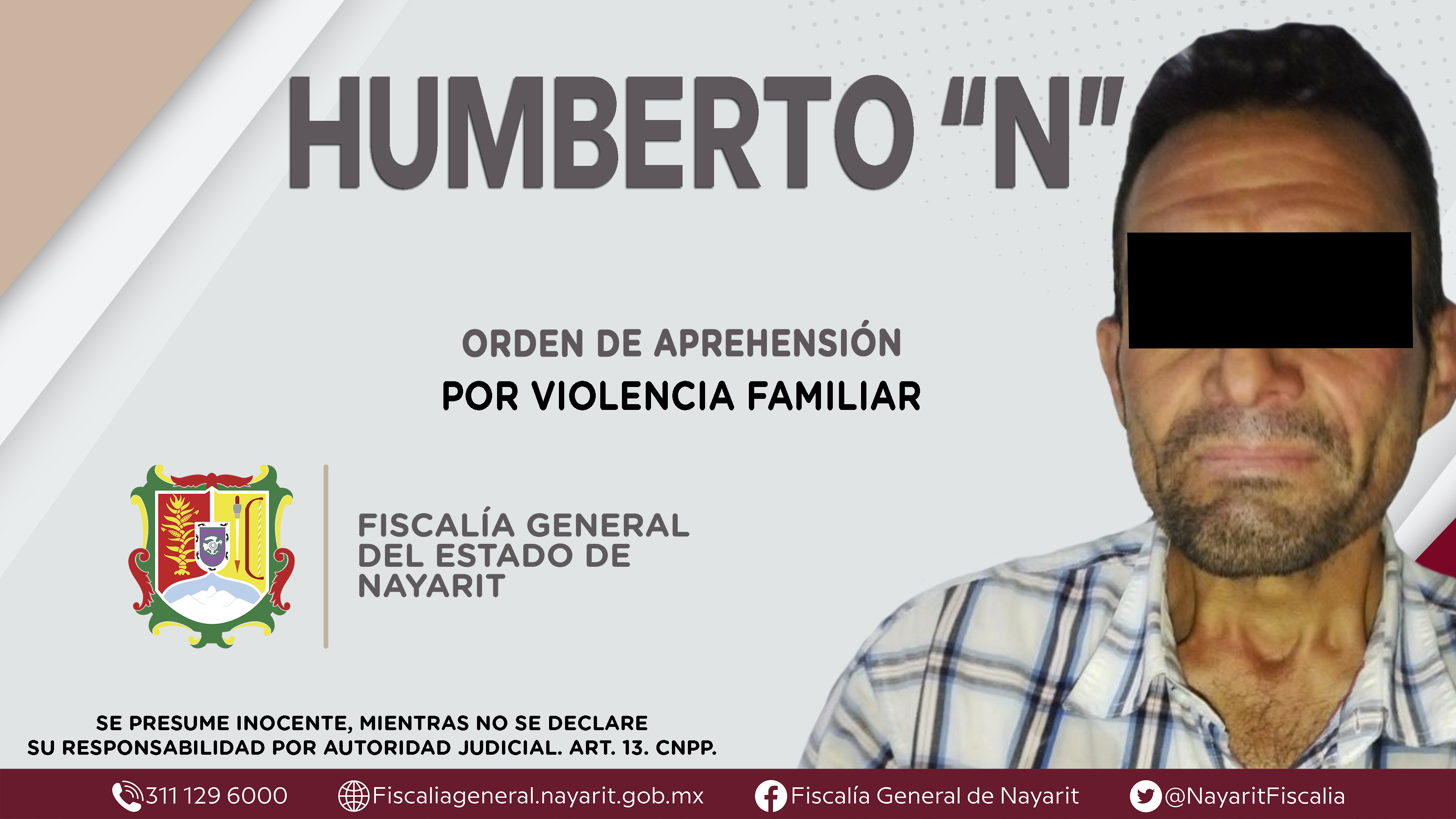 La Fiscalía General de Nayarit a través de la Agencia de Investigación Criminal dio cumplimiento a una orden de aprehensión en la capital nayarita contra Humberto “N”, por su presunta participación en hechos que según apreciación de la ley enc...