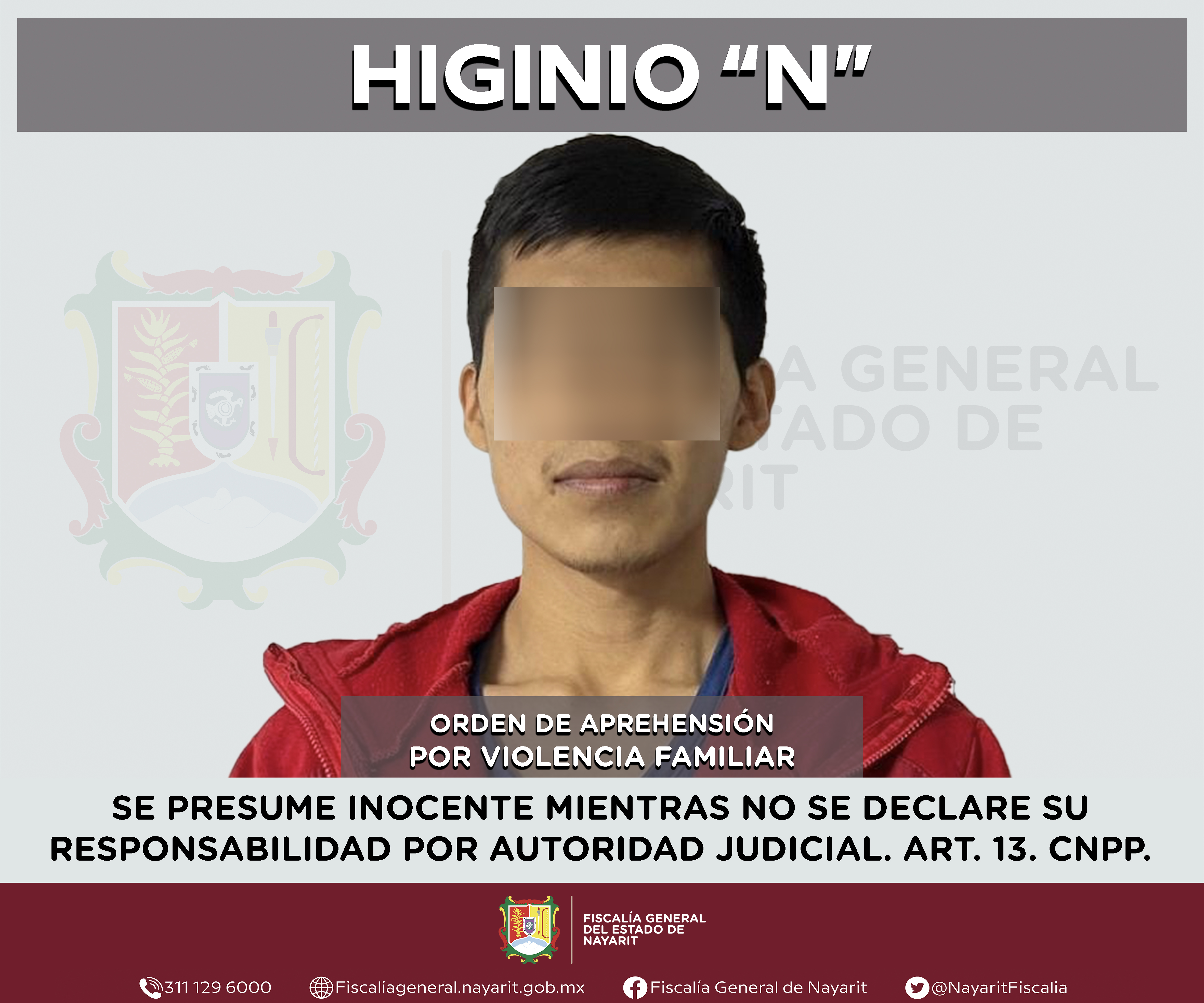 La Fiscalía General de Nayarit a través de la Agencia de Investigación Criminal ejecutó una orden de aprehensión en la ciudad de Tepic contra Higinio “N”, por su presunta participación en hechos que según apreciación de la ley encuadran el de...
