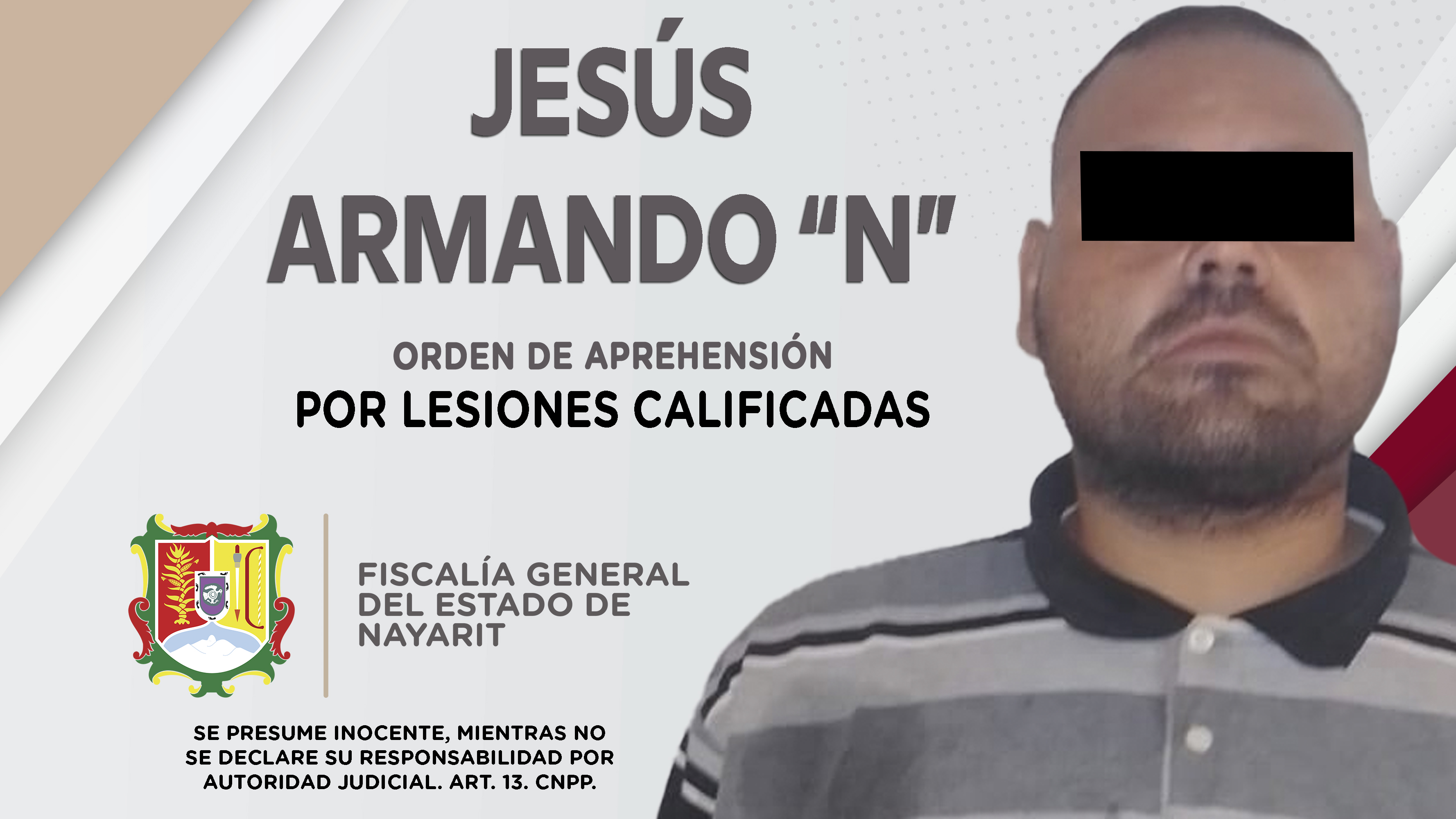 Personal de la Agencia de Investigación Criminal de Nayarit dio cumplimiento a una orden de aprehensión en el poblado Jalcocotán, municipio de San Blas contra Jesús Armando “N”, por su presuntiva responsabilidad penal en hechos que la ley conside...