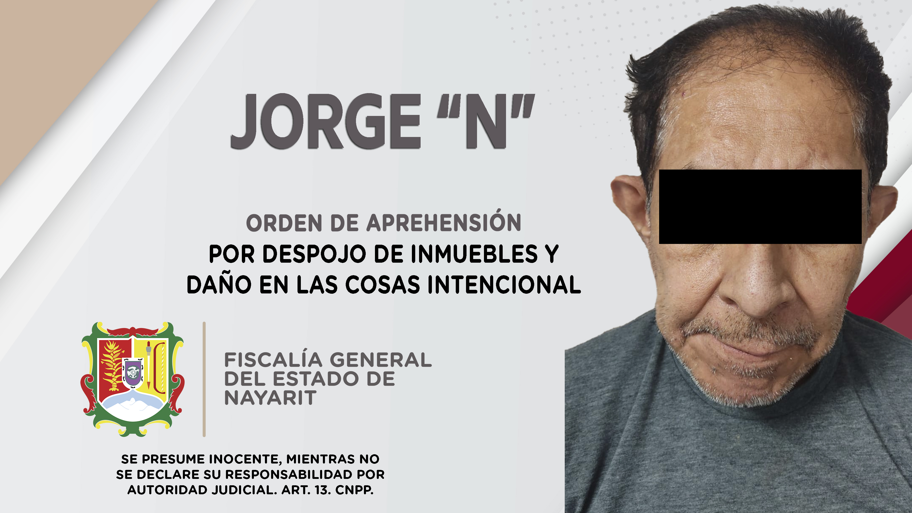 Elementos de la Agencia de Investigación Criminal ejecutaron una orden de aprehensión en contra de Jorge “N”, por su presunta participación en hechos que según apreciación de la ley encuadran los delitos de despojo de inmuebles y daño en las co...