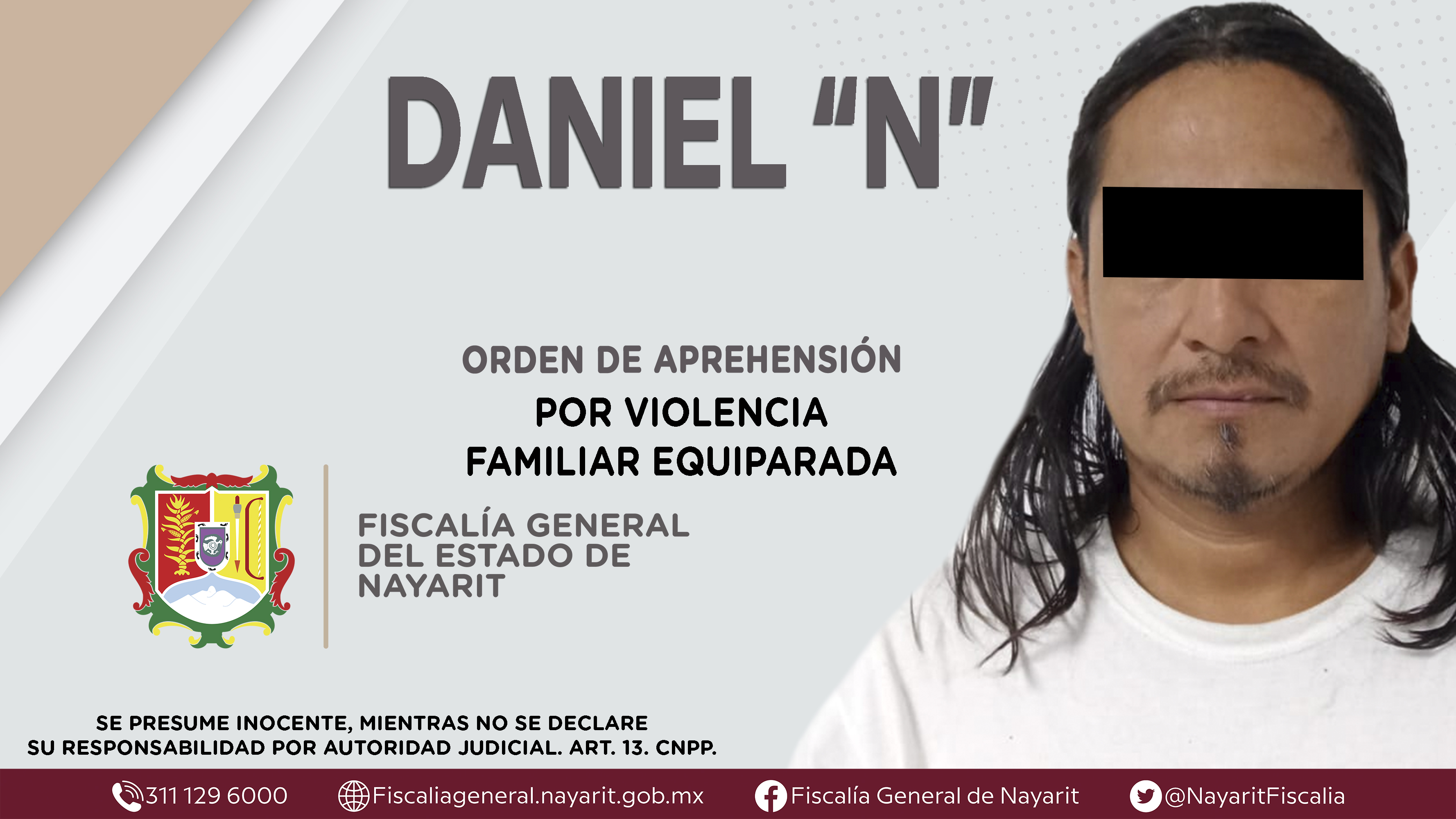Elementos de la Agencia de Investigación Criminal de Nayarit ejecutaron una orden de aprehensión en la capital nayarita contra Daniel “N”, por su presunta participación en hechos que según apreciación de la ley encuadran el delito de violencia f...