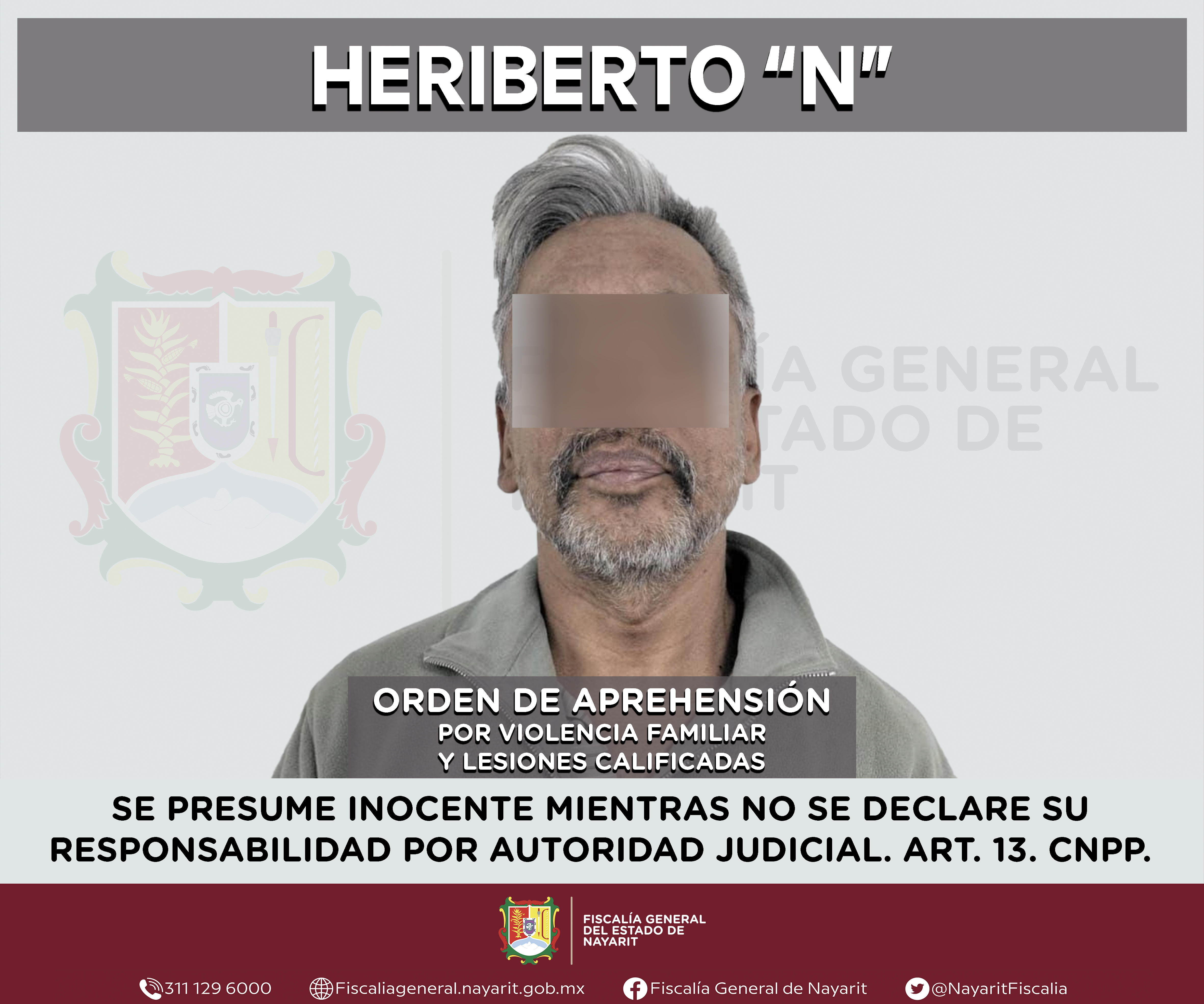 La Fiscalía General del estado de Nayarit a través de la Agencia de Investigación Criminal ejecutó una orden de aprehensión en la capital nayarita contra Heriberto “N”, por su presunta participación en hechos que según valoración de la ley en...