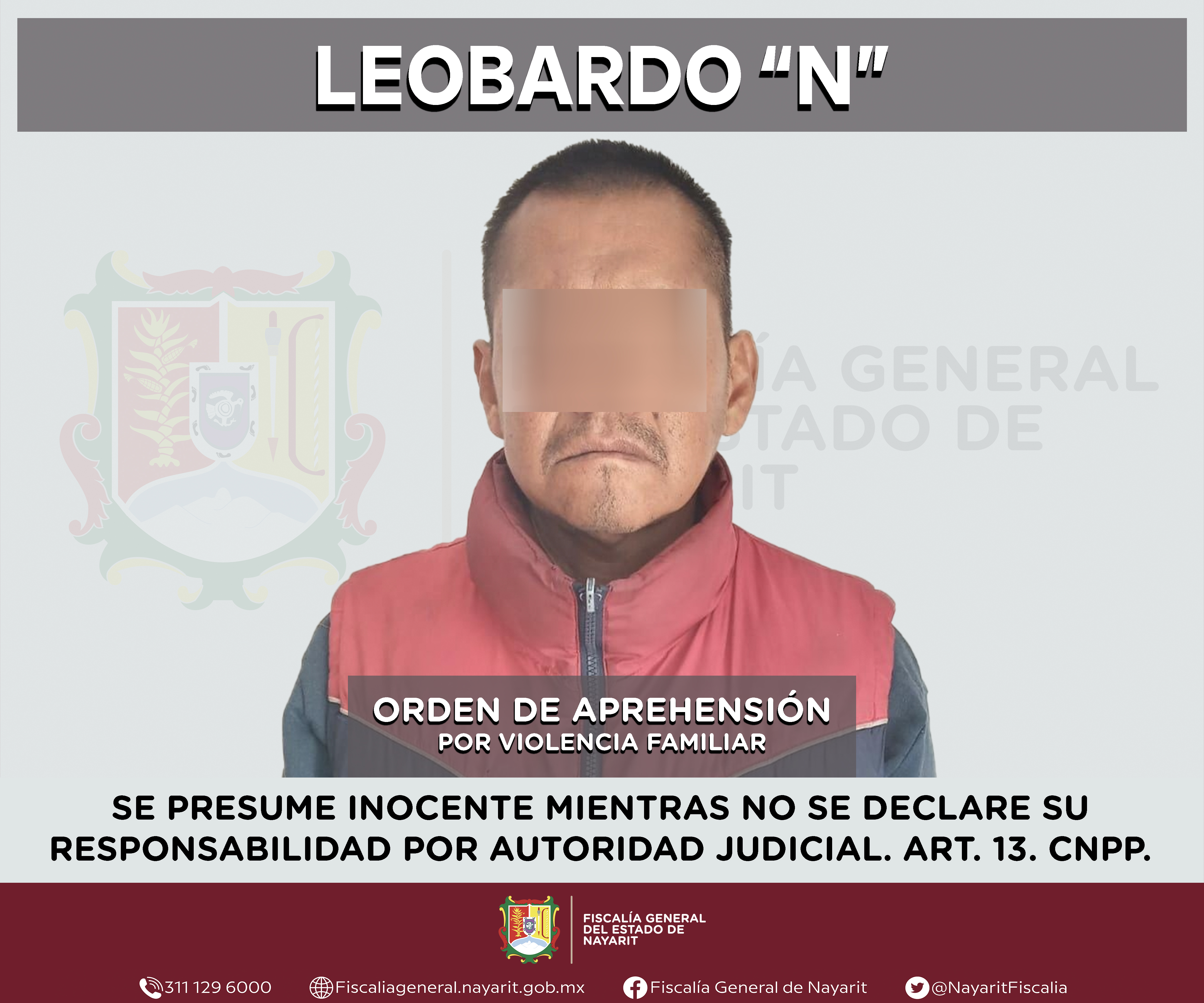 La Fiscalía General del estado de Nayarit a través de la Agencia de Investigación Criminal ejecutó una orden de aprehensión en la capital nayarita contra Leobardo “N”, por su presunta participación en hechos que según valoración de la ley enc...