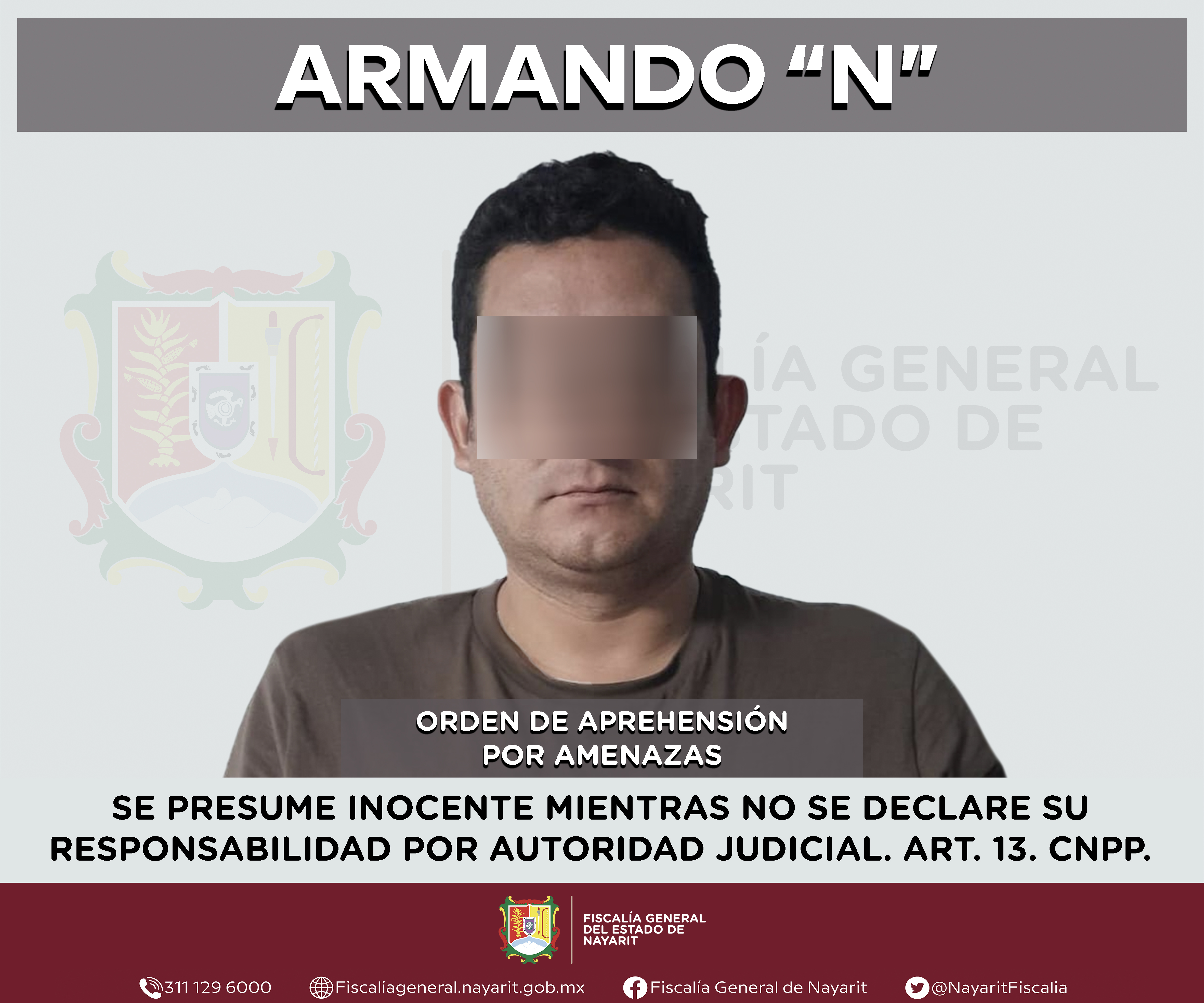 La Fiscalía General de Nayarit a través de la Agencia de Investigación Criminal ejecutó una orden de aprehensión en la ciudad de Tepic contra Armando “N”, por su presunta participación en hechos que según apreciación de la ley encuadran el de...