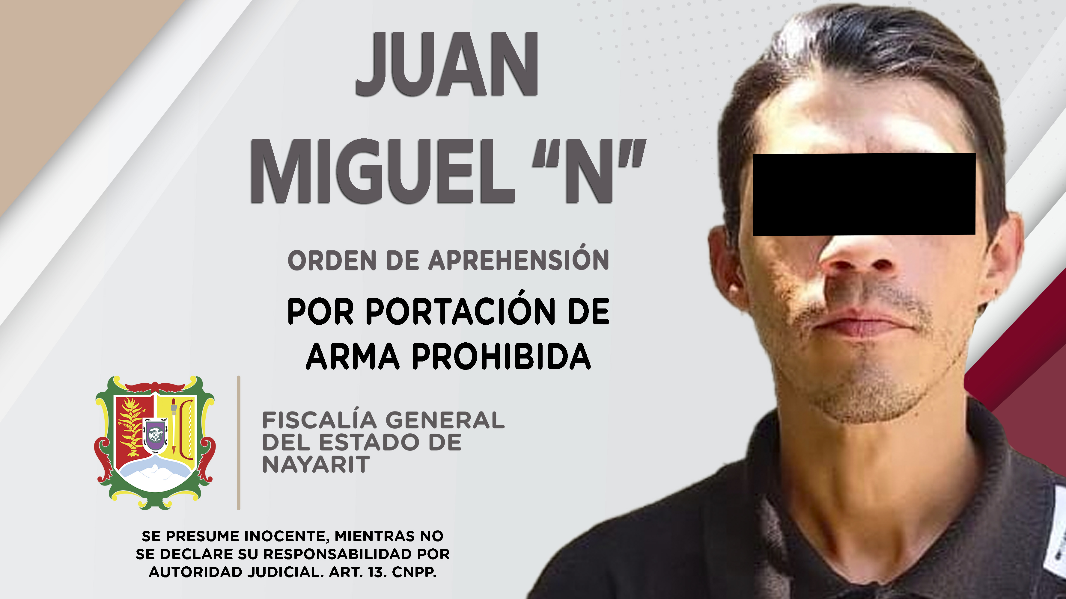 Personal de la Agencia de Investigación Criminal de Nayarit dio cumplimiento a una orden de aprehensión en la ciudad de Tepic contra Juan Miguel “N”, por su presuntiva responsabilidad penal en hechos que la ley considera como delito de portación d...