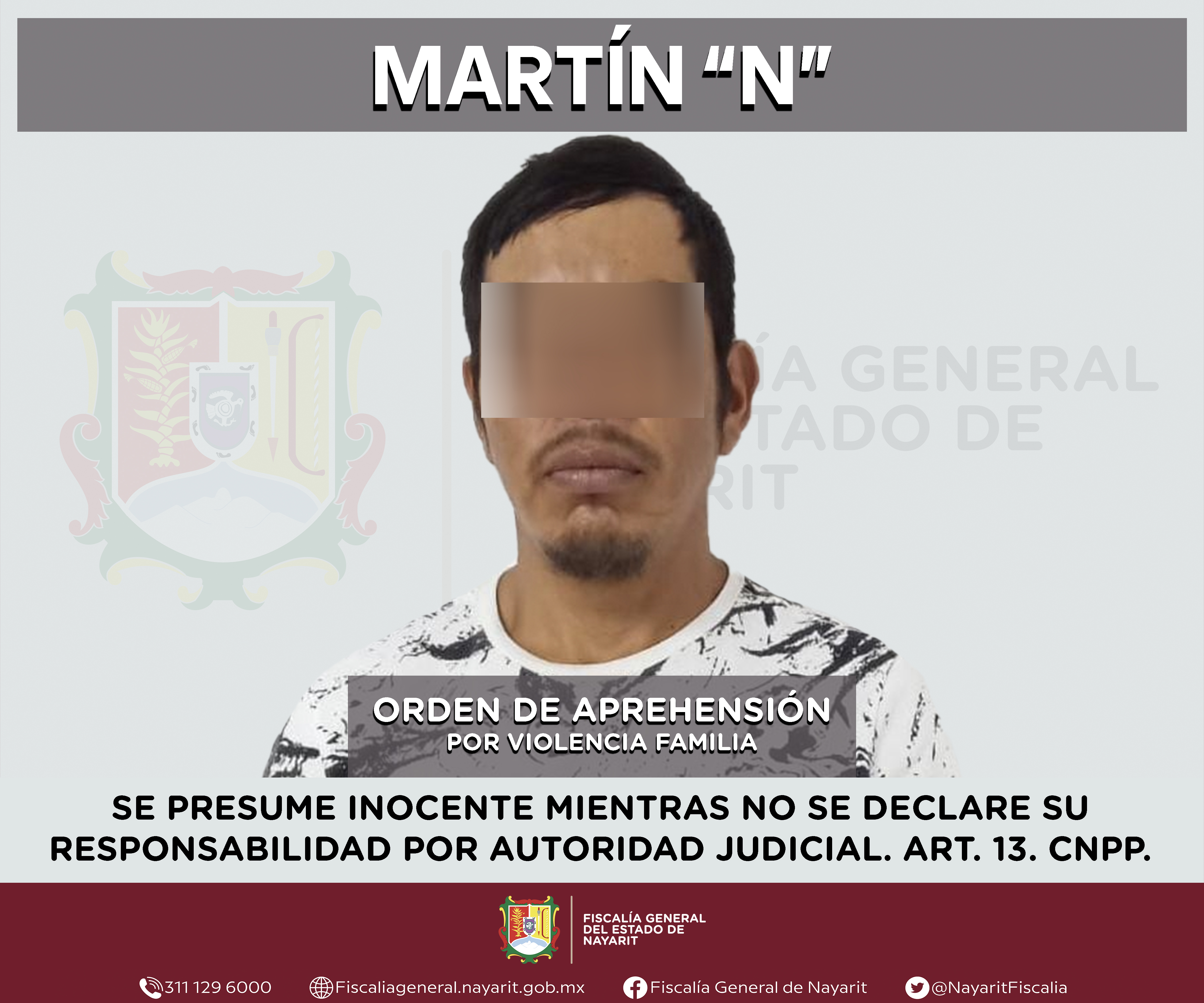 Elementos de la Agencia de Investigación Criminal de Nayarit ejecutaron una orden de aprehensión en la ciudad de Tepic contra Martín “N”, por su presunta participación en hechos que según apreciación de la ley encuadran el delito de violencia f...