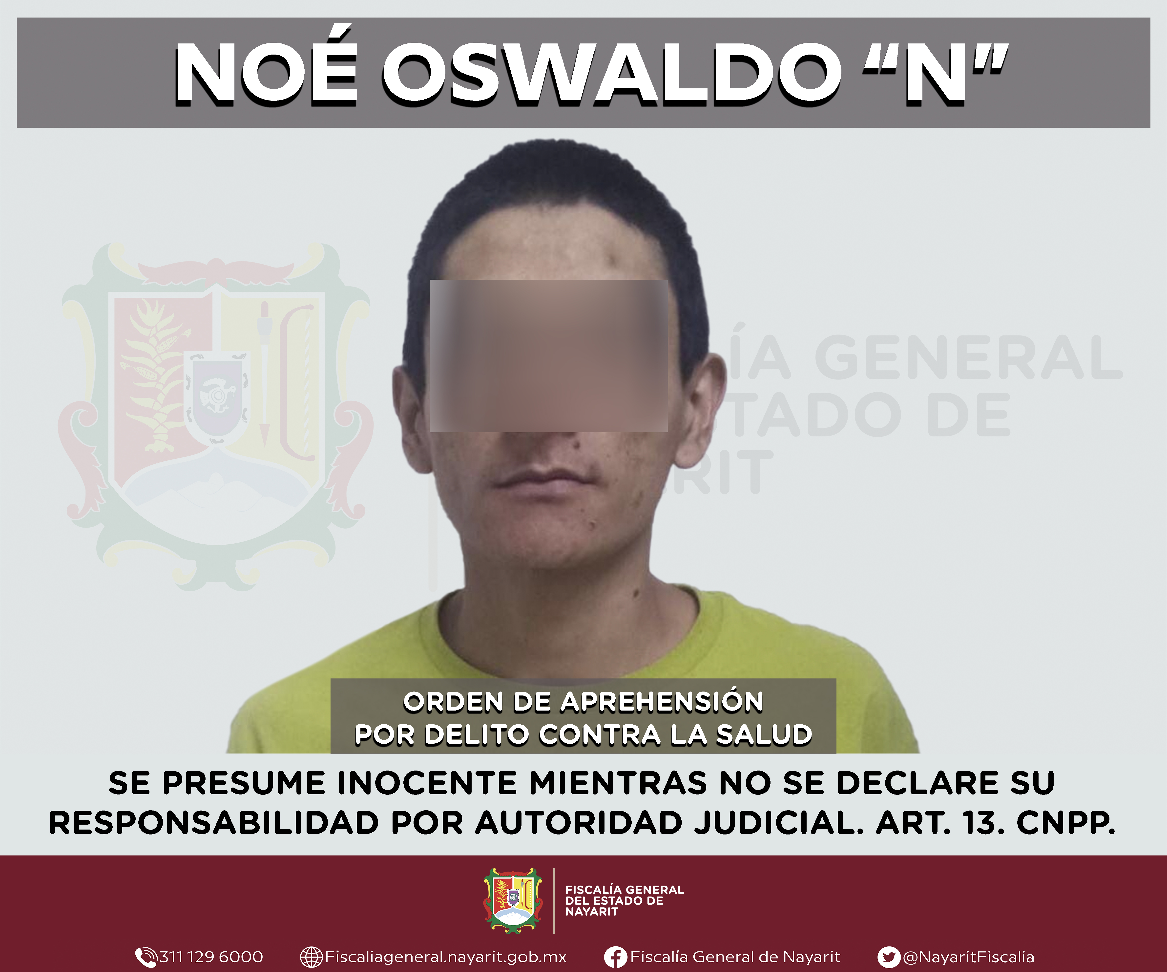 Elementos de la Agencia de Investigación Criminal de Nayarit ejecutaron una orden de aprehensión en la capital nayarita contra Noé Oswaldo “N”, por su presunta participación en hechos que según apreciación de la ley encuadran el delito contra l...