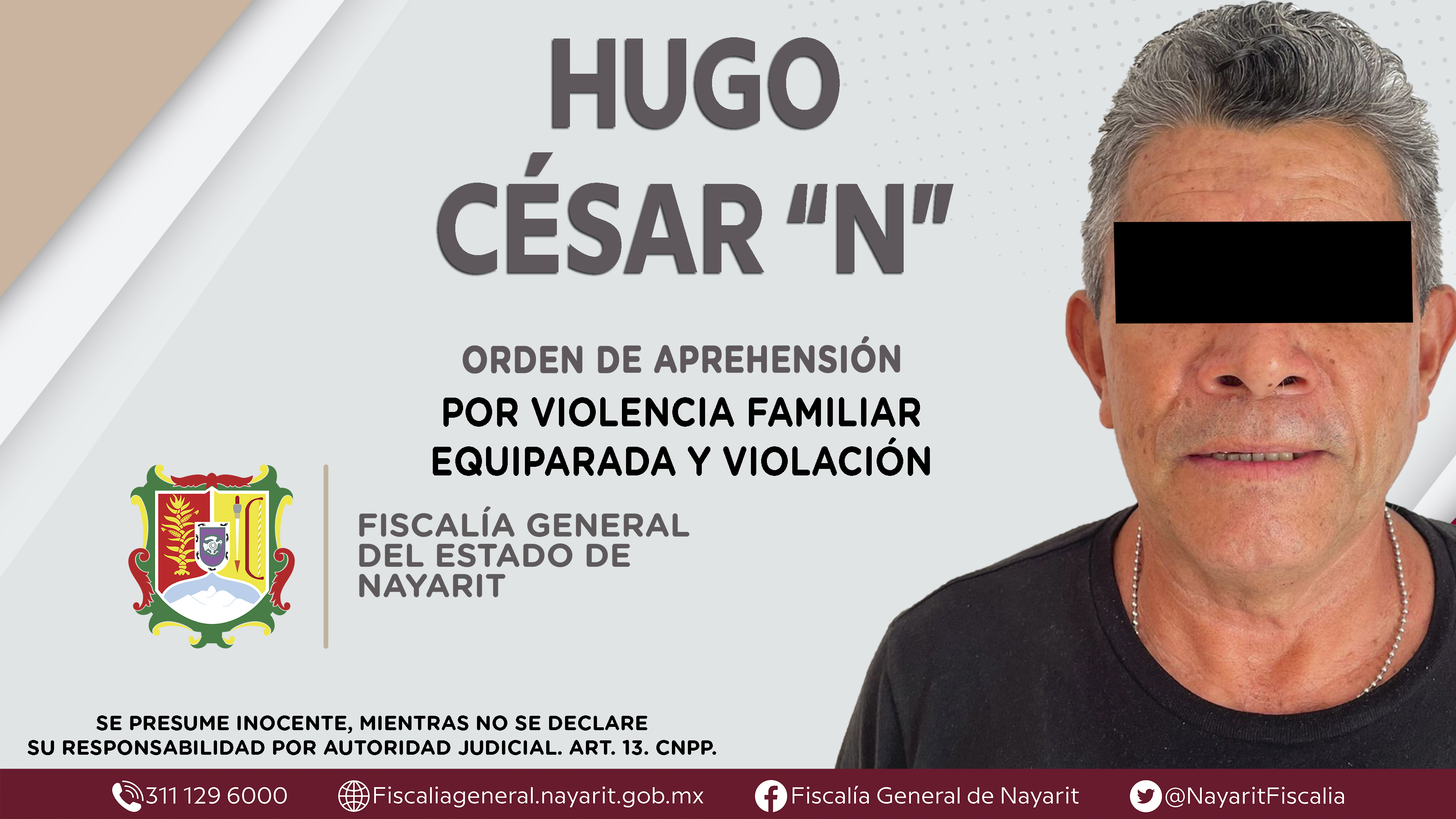 La Fiscalía General del Estado a través de la Agencia de Investigación Criminal dio cumplimiento a una orden de aprehensión en la capital nayarita contra Hugo César “N”, por su presunta participación en hechos que bajo la apreciación de la ley...
