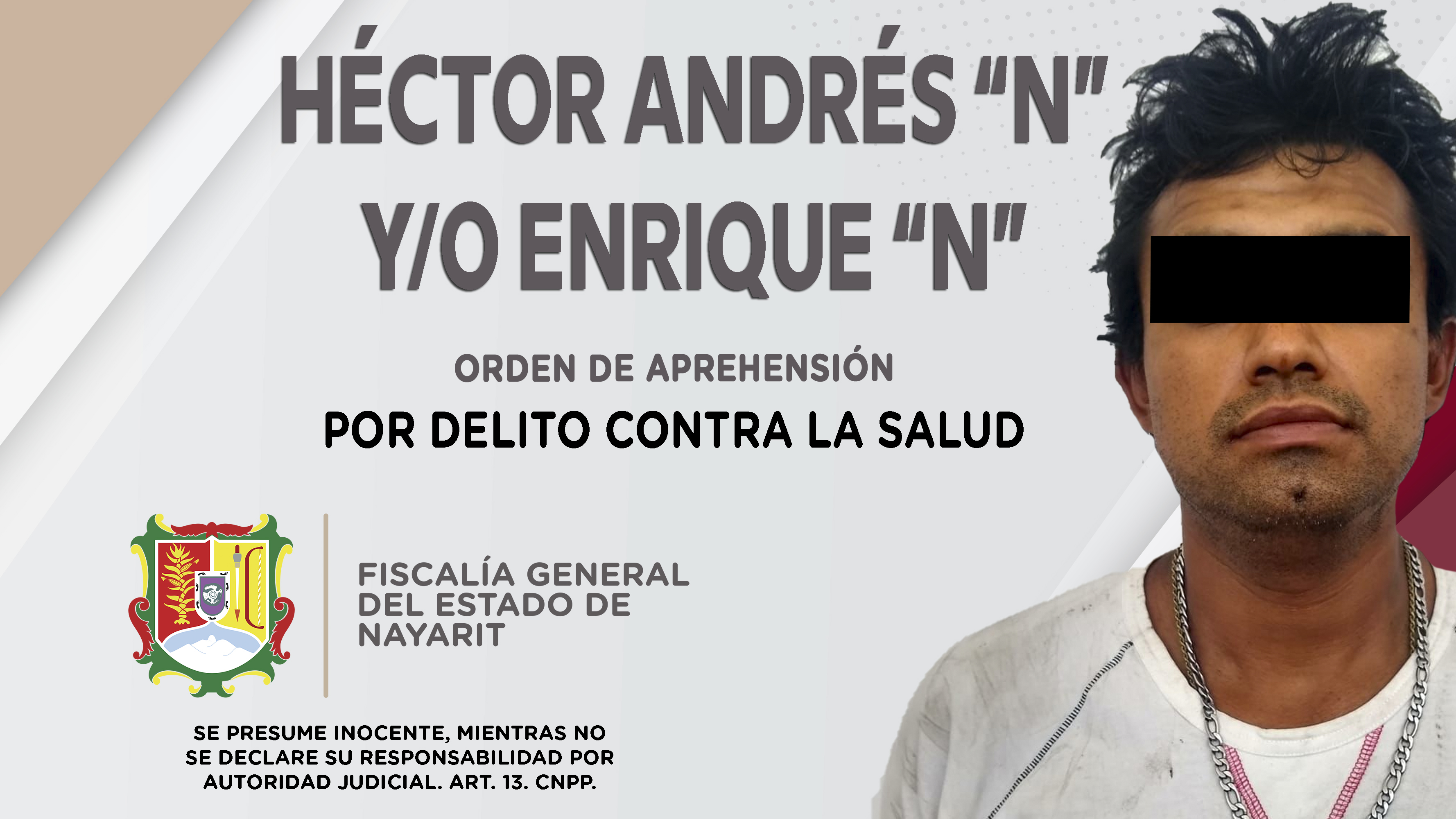 Fiscalía General de Nayarit a través de la Agencia de Investigación Criminal, ejecutó una orden de aprehensión en la ciudad de Tepic contra Héctor Andrés “N” y/o Enrique “N”, por su presunta participación en hechos que según apreciación...