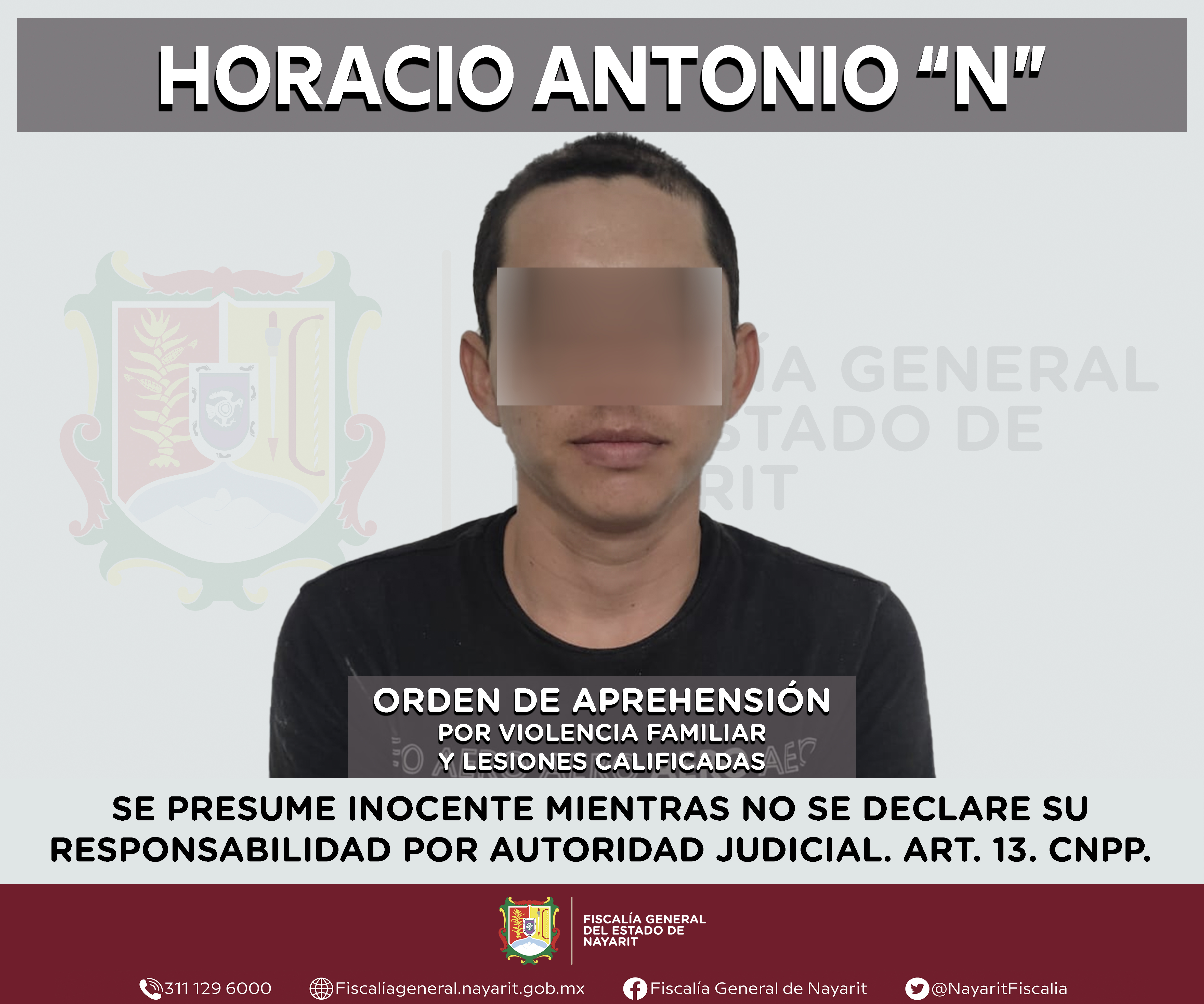 La Fiscalía General del estado de Nayarit a través de la Agencia de Investigación Criminal ejecutó una orden de aprehensión en la localidad Paredones, municipio de Santiago Ixcuintla contra Horacio Antonio “N”, por su presunta participación en ...